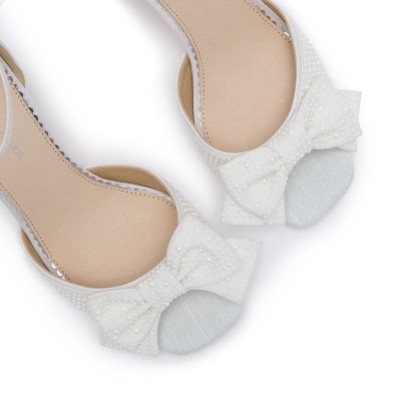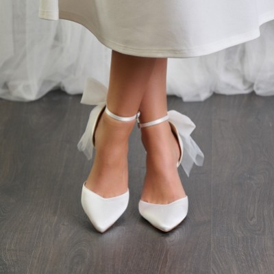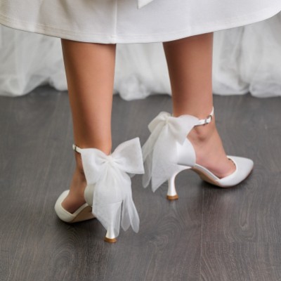 Your search for white bridal shoes with bows is over... At Lace & Favour we offer the cutest styles for your special day, from block heels adorned with oversized satin bows, to dainty wedding sandals and stylish bow court shoes. Bow bridal heels look so gorgeous peaking out the bottom of a long gown, and will easily take centre stage when wearing a short wedding dress! Shop our wedding bow shoes online today with worldwide delivery.