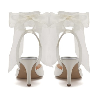 15 of 16 Mimi Ivory Chiffon Ribbon Bow Pointed Slingback Heels