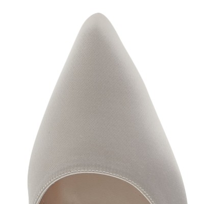 14 of 16 Adele Ivory Satin Two Part Pointed Court Shoes with Pearl Bow