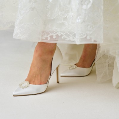 Cheers to these gorgeous newly weds! 🥂 Our beautiful real bride Abbie wore our Pippa high heel court shoes to complement her stunning gown! 🤩