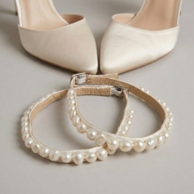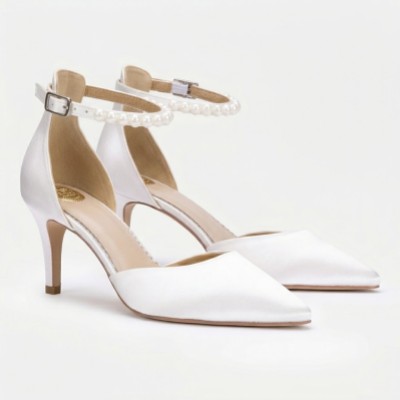 1 of 1 Ella Mid Dyeable Ivory Satin Keshi Pearl Ankle Strap Court Shoes