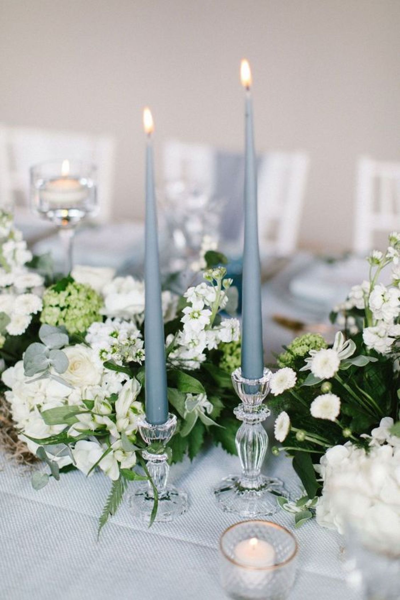 Blue Candles: Infuse a soft and romantic ambience into your wedding venue by incorporating blue candles. Whether scattered throughout the space or grouped together on tables, the warm glow emitted by these candles will cast a magical hue, adding a dreamy and enchanting aura to your special day.