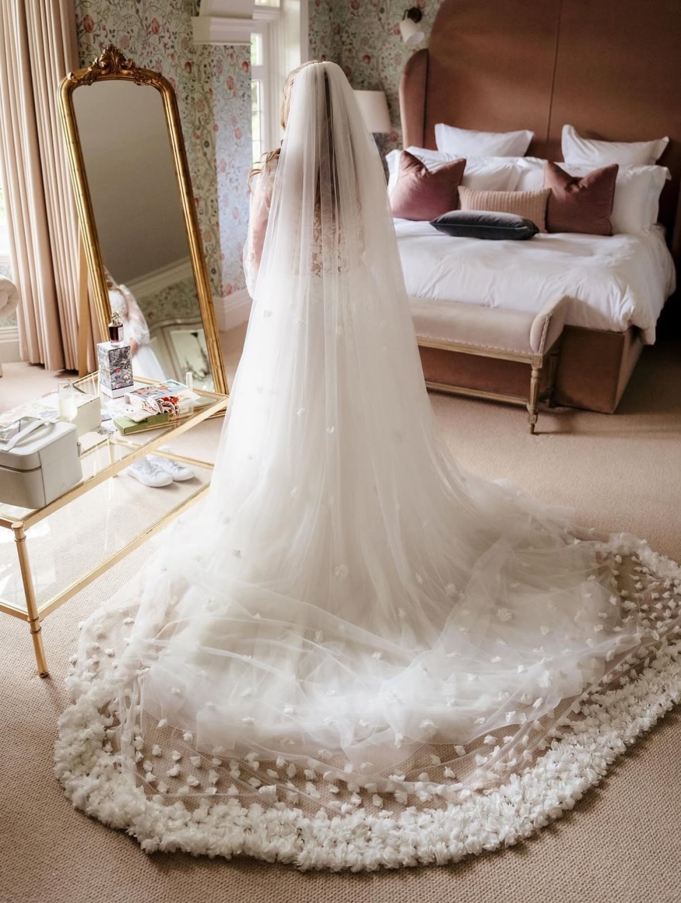Gorgeous real bride Anita wore our Single tier heavily embellished flowers cathedral veil PBV9035 πΈ