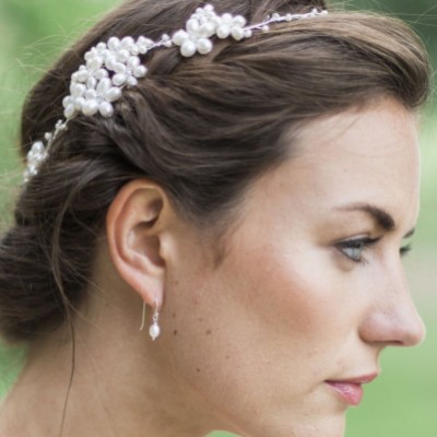 Leanne wore our Ivory single tier satin edge fingertip veil S196 by Bianco, Miliana delicate pearl wedding bracelet, Starlight silver pearl drop earrings by Hermione Harbutt and the Georgia ivory satin and silver glitter court shoes by Rainbow Club.