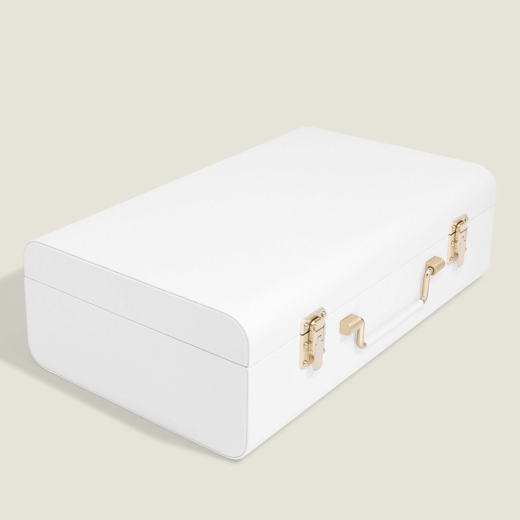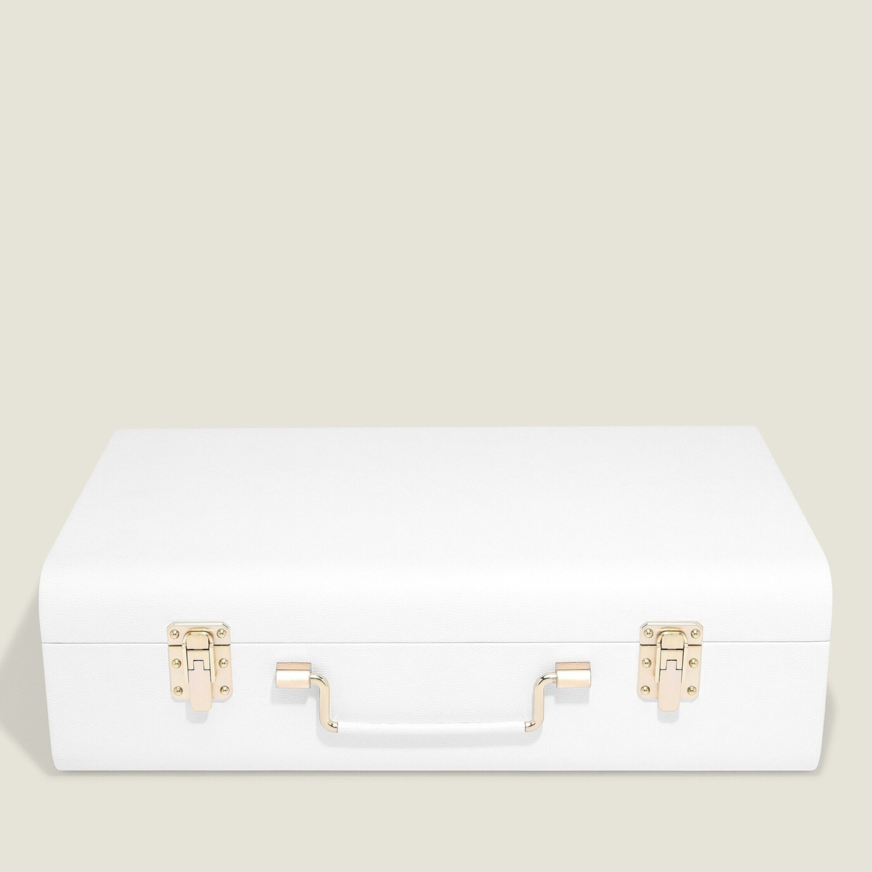The Stackers Memory Box is the perfect solution for treasuring your special keepsakes. Elegantly designed in pebble white faux-leather and finished with a gold handle and clasps. The interior of the box is made of a soft grey velvet to protect your special items, so you can create a beautiful display of memories or keep them safely stored away. Inside of the Memory Box there are two pouches for storing loose cards and letters, as well as elasticated loops for keeping delicate items in place. You’ve also got a large open compartment for the bigger items you want to keep in perfect condition, such as shoes or clothing. The Memory Box makes a wonderful gift for special occasions such as a wedding, new baby or a big birthday.