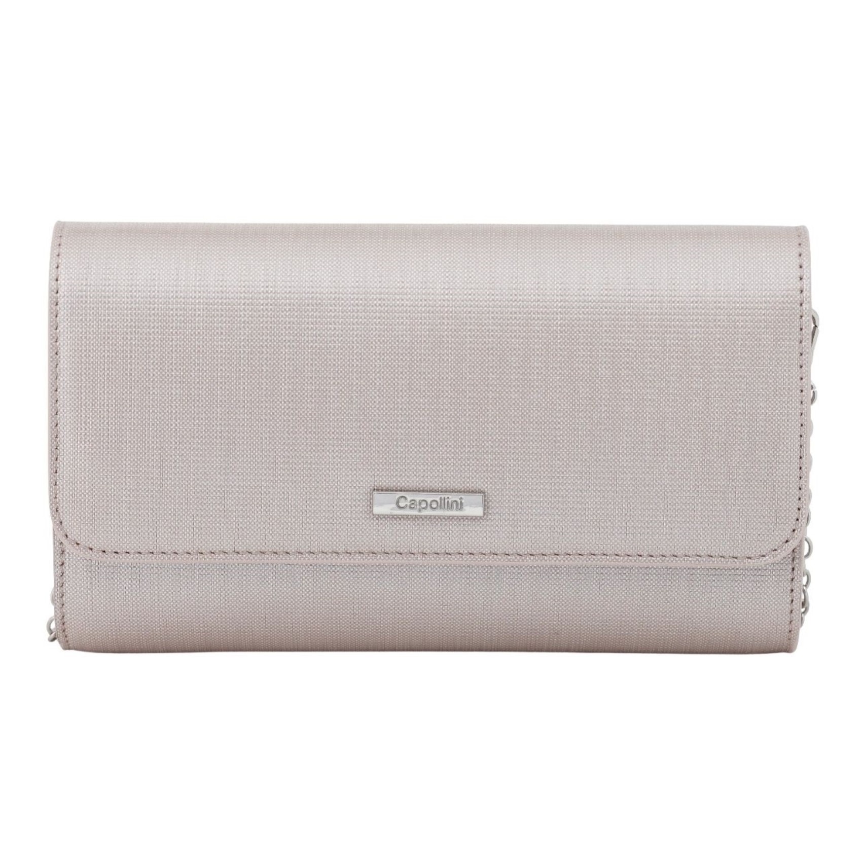 Diese zeitlose Handtasche aus perlmuttfarbenem, rosafarbenem Leder wurde in Handarbeit gefertigt und verfügt über einen weichen Magnetverschluss, ein wunderschönes Futter, eine große Reißverschlusstasche und ein offenes Fach im Inneren. Tragen Sie sie als klassische Clutch oder nutzen Sie die lange, abnehmbare Schulterkette, um die Hände frei zu haben! Mit dem Gütesiegel „ Capollini ” versehen.