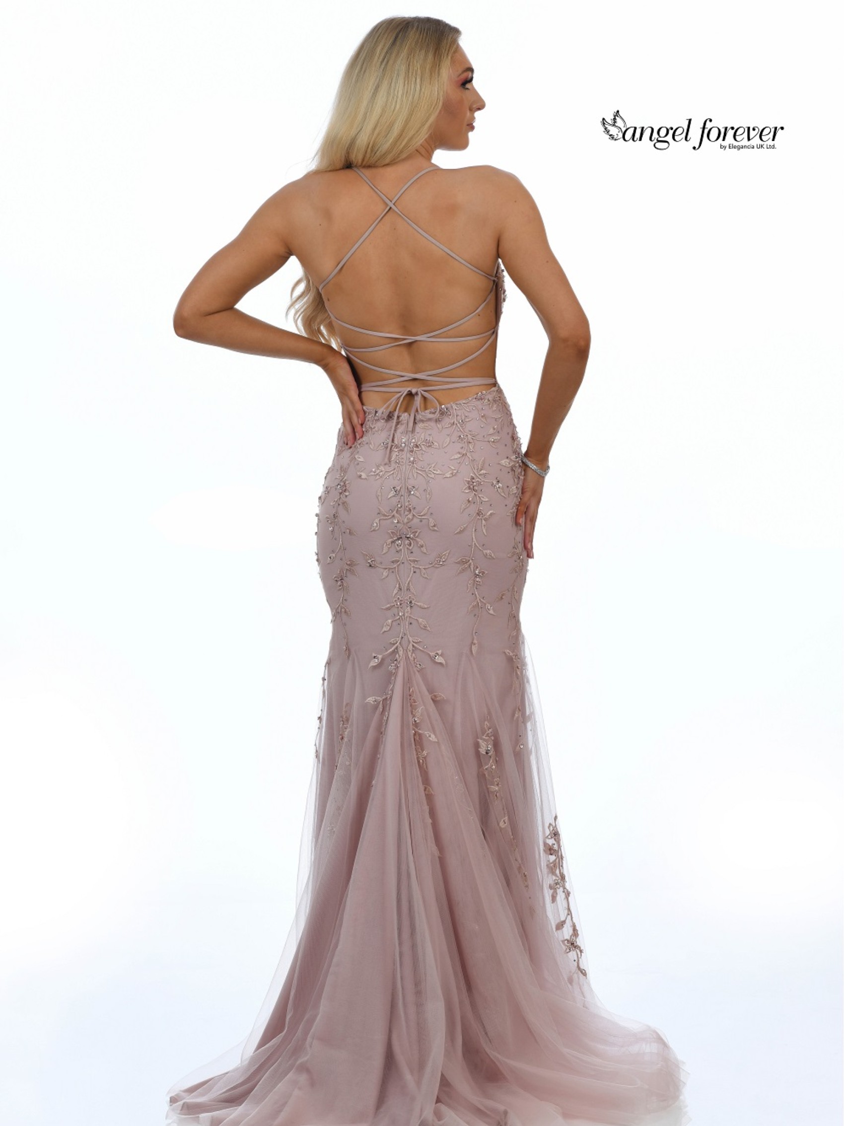 Angel Forever Perlenbesetztes rückenfreies Fishtail-Abschlussballkleid (Rose Gold) | AF20441-ROSE