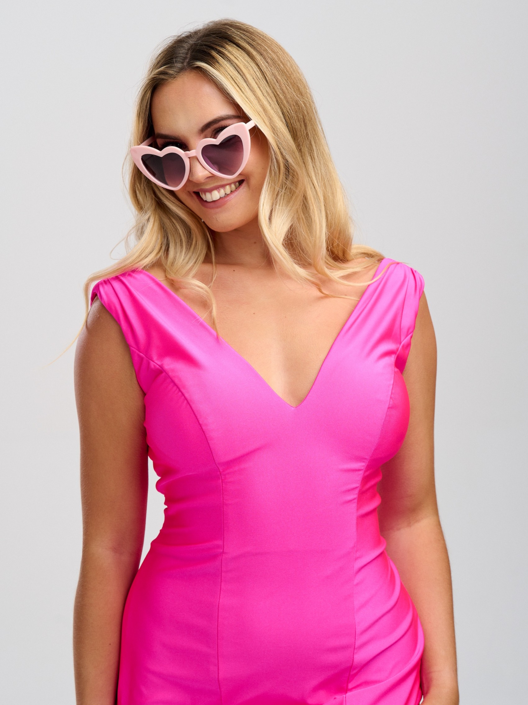 Das Model trägt Größe UK 10 in Hot Pink.
