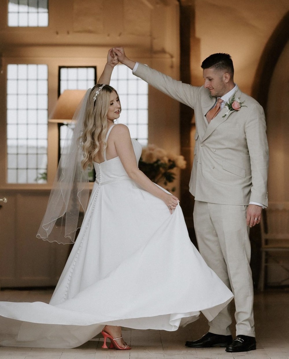 Mit 24 funkelnden Swarovski-Kristallen besetzt, verleiht dieser wunderschöne Schleier Ihrem Brautlook sofortigen Glanz. Handgefertigt aus weichem elfenbeinfarbenem Tüll und mit einer einfachen Kordelkante versehen, ist dieser einreihige Brautschleier eine atemberaubende Ergänzung für jedes Brautkleid.