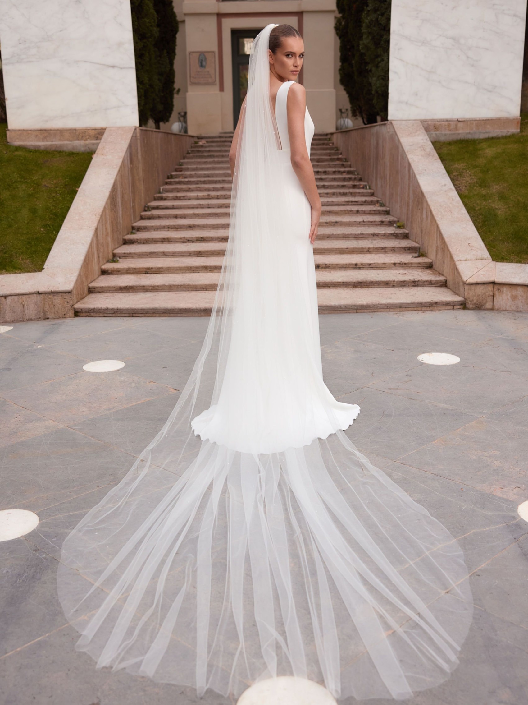 Bianco Ivory Single Tier Scattered Pearl Royal Length Veil S553 | S553