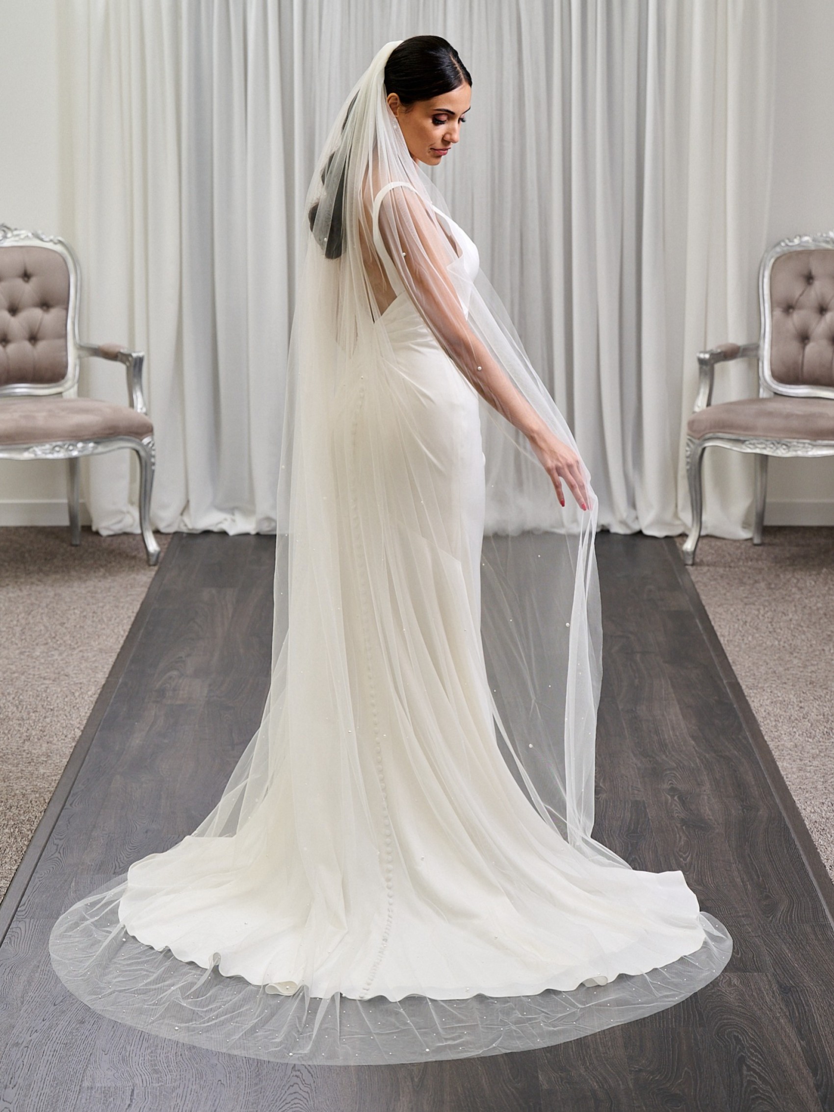 Chelsea Einstöckiger Italienischer Tüll Schleier mit verstreuten Perlen | LFV029