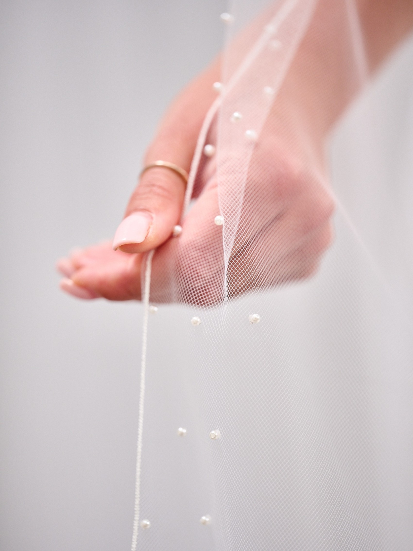 Chicago Elfenbein Einstöckiger Langer Stark Verschönerter Perlenschleier | TLV8160