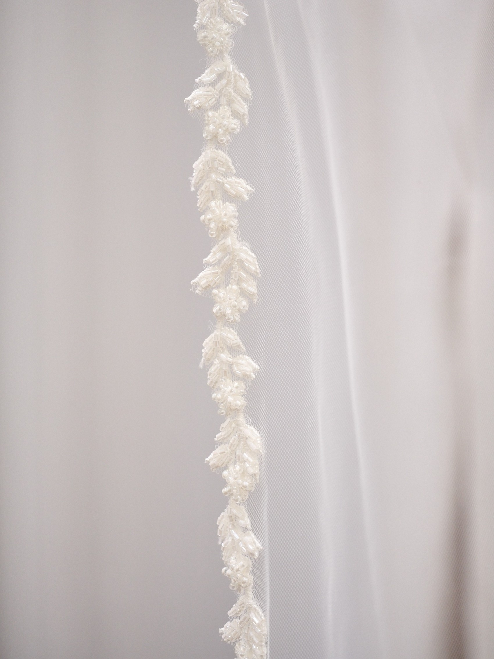 Oxford Single Tier Italian Tulle Narrow Beaded Lace Trimmed Veil | LFV041