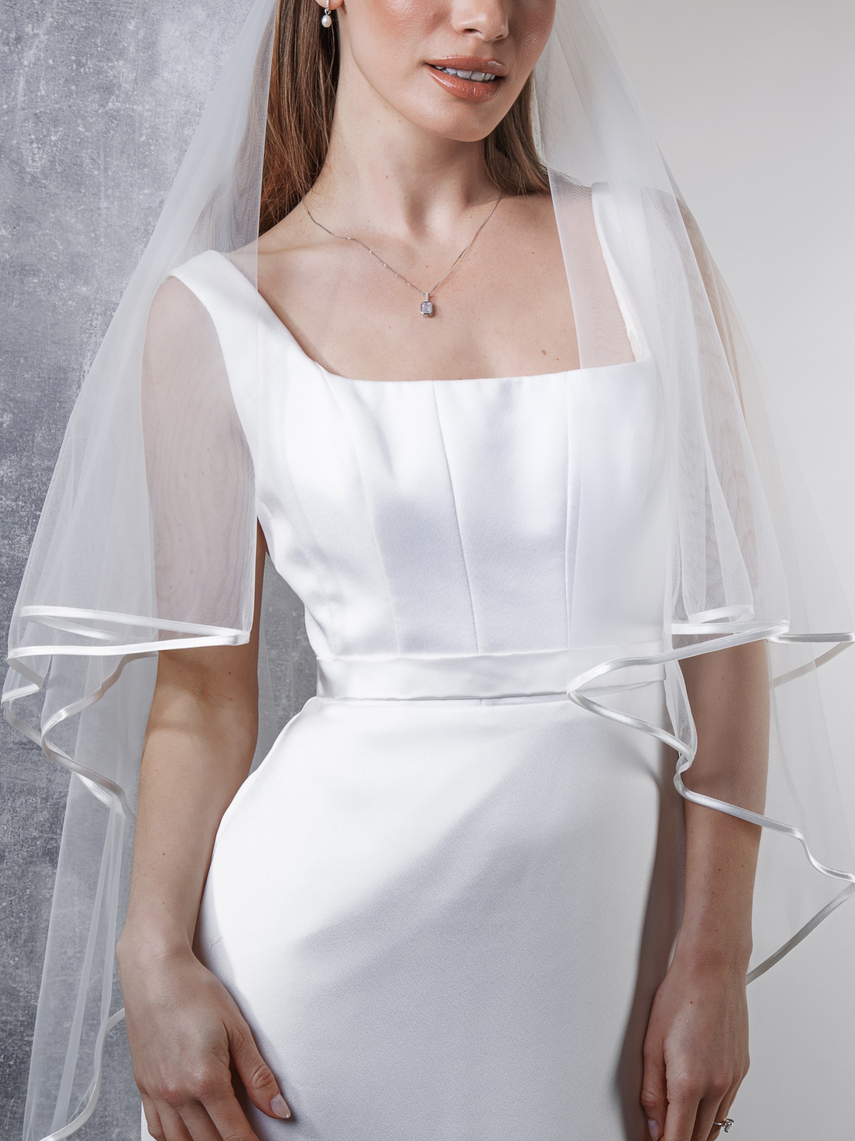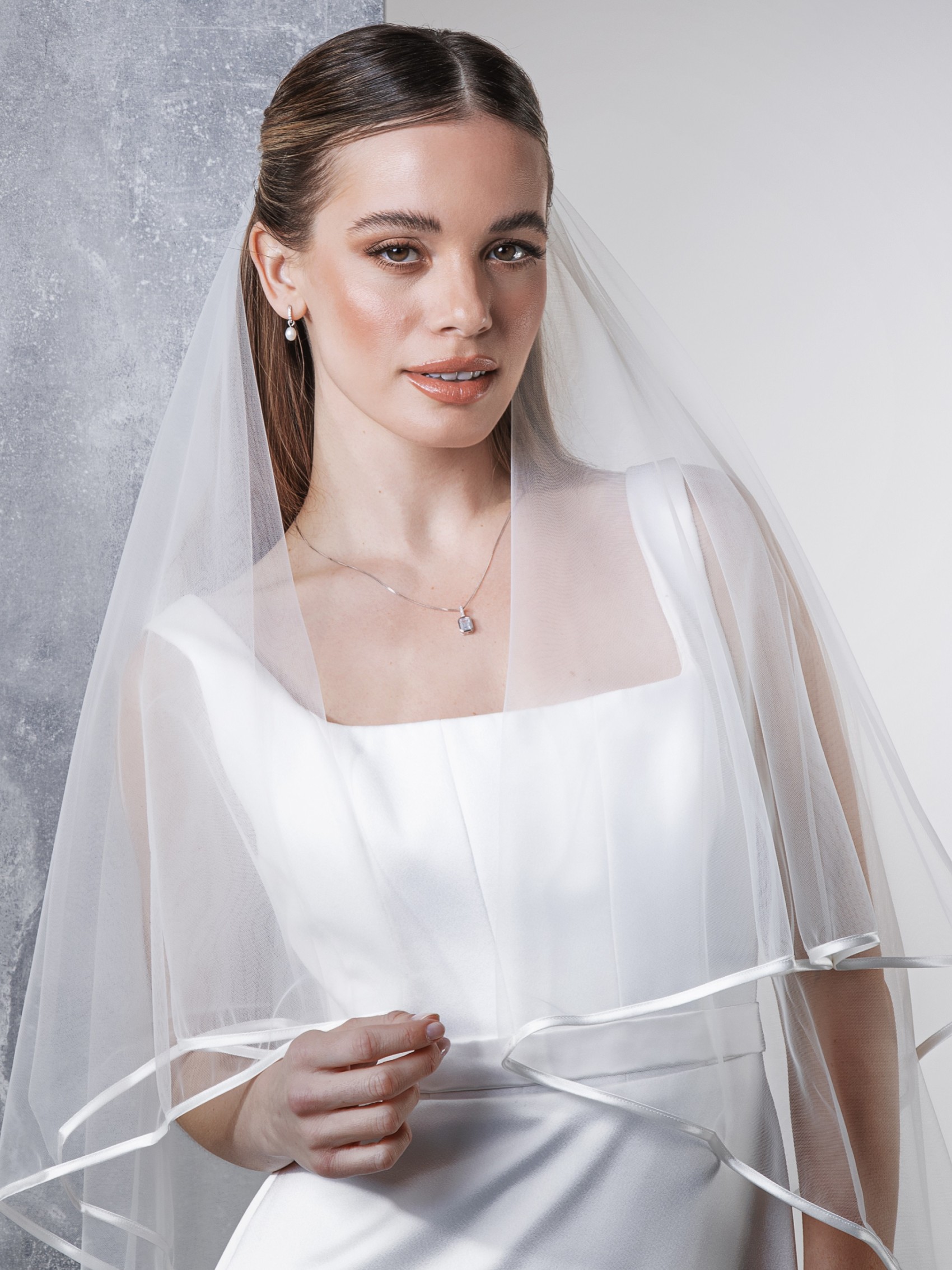 Traditionell und zeitlos, Jessamy ist ein wunderschöner Brautschleier, ideal für klassische Bräute. Ein raffinierter, zweistufiger Schleier, handgefertigt aus exklusivem, weichem italienischem Tüll, der mit einer zarten Satinkante versehen ist. Die perfekte Schleierwahl für dezente Bräute.