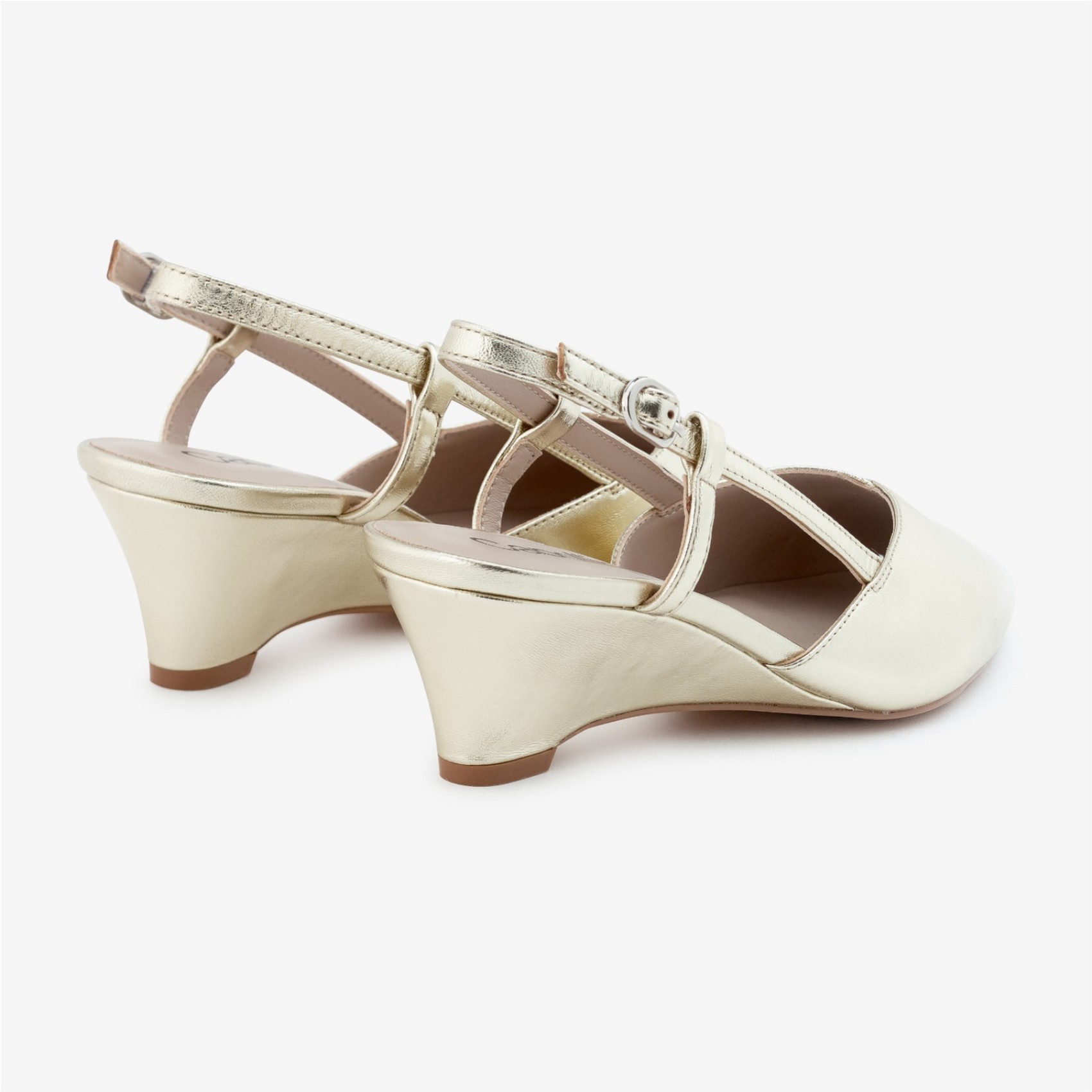 Capollini Lumi Gold Leather Low Wedge Slingbacks | C347