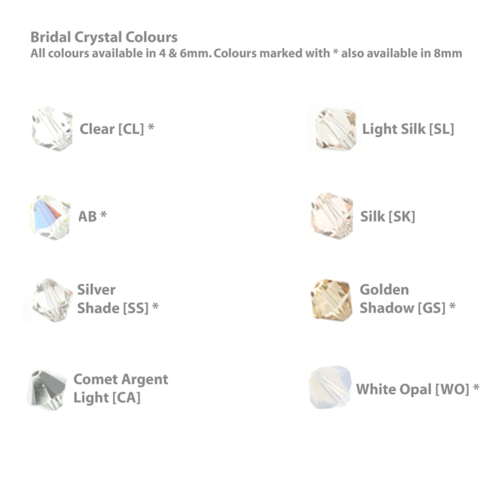 Abgebildet in Silber mit elfenbeinfarbenen Perlen und klaren Kristallen.
