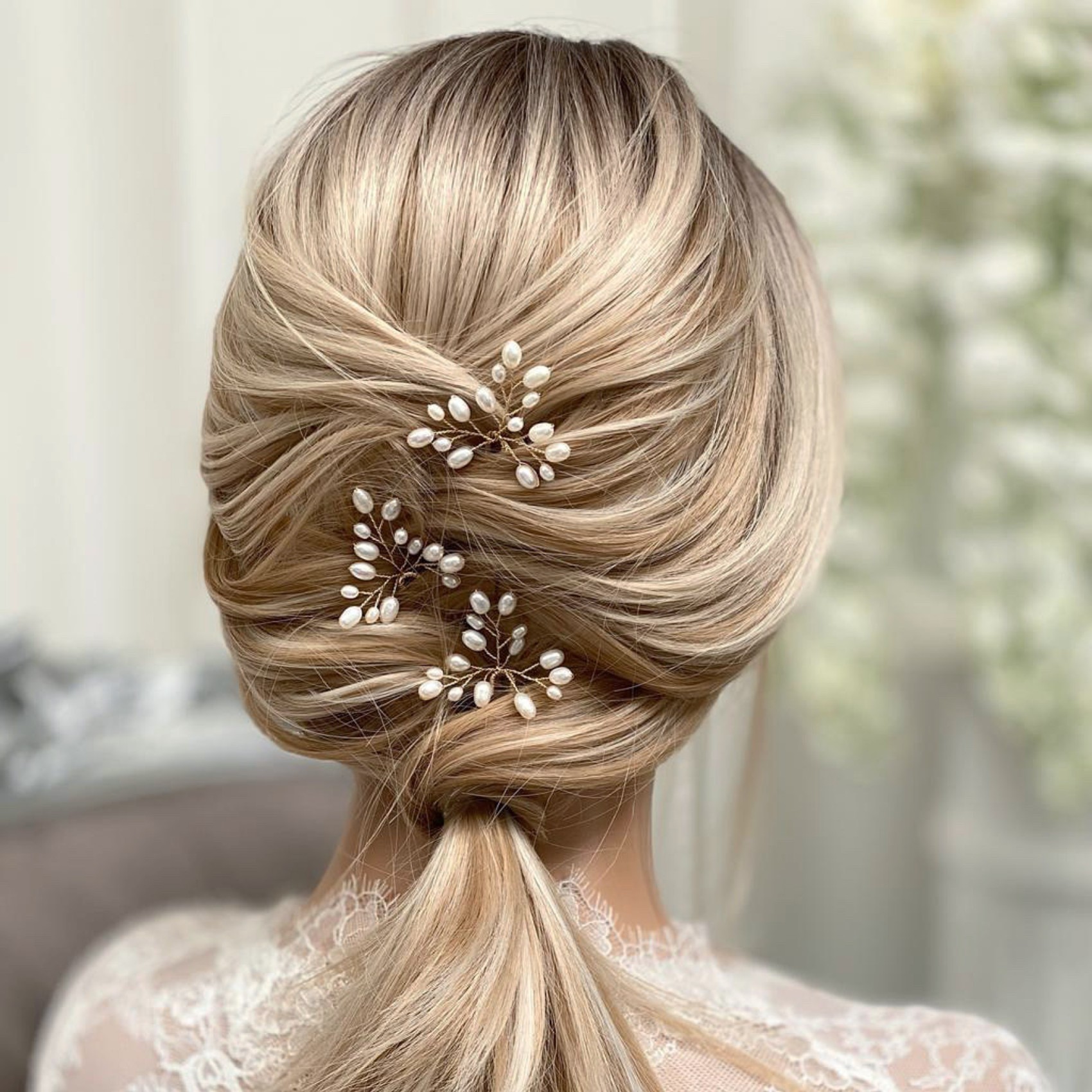 Eine wunderschöne Süßwasserperlen-Haarnadel für die Braut, handgefertigt mit zartem Golddraht und luxuriösen elfenbeinfarbenen Perlen. Tragen Sie sie im 3er-Set, als Paar oder allein, um Ihrem Hochzeitshaar den schönsten Perlenakzent zu verleihen. Eine wunderbare Wahl für Bräute und Brautjungfern!