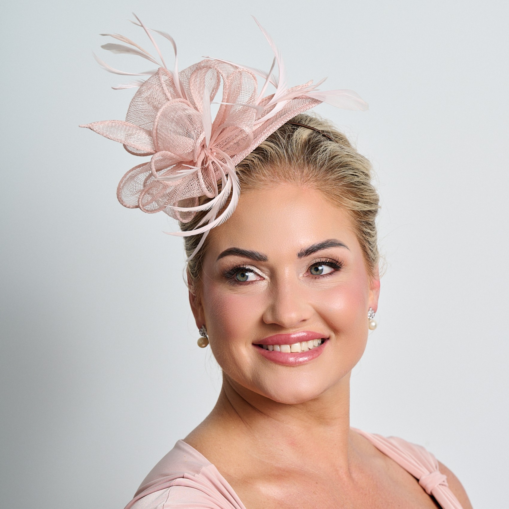 Blush Pink Sinamay und Feder Hochzeit Fascinator | 15-12034-39