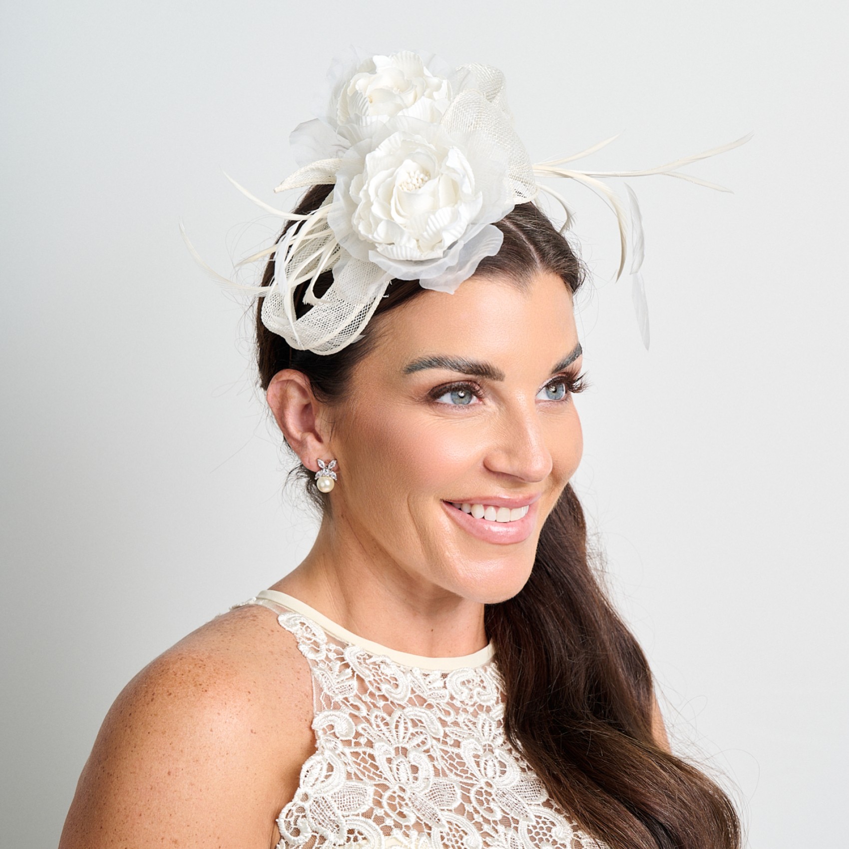 Creme Floral Feder Hochzeit Fascinator | 15-12102-11