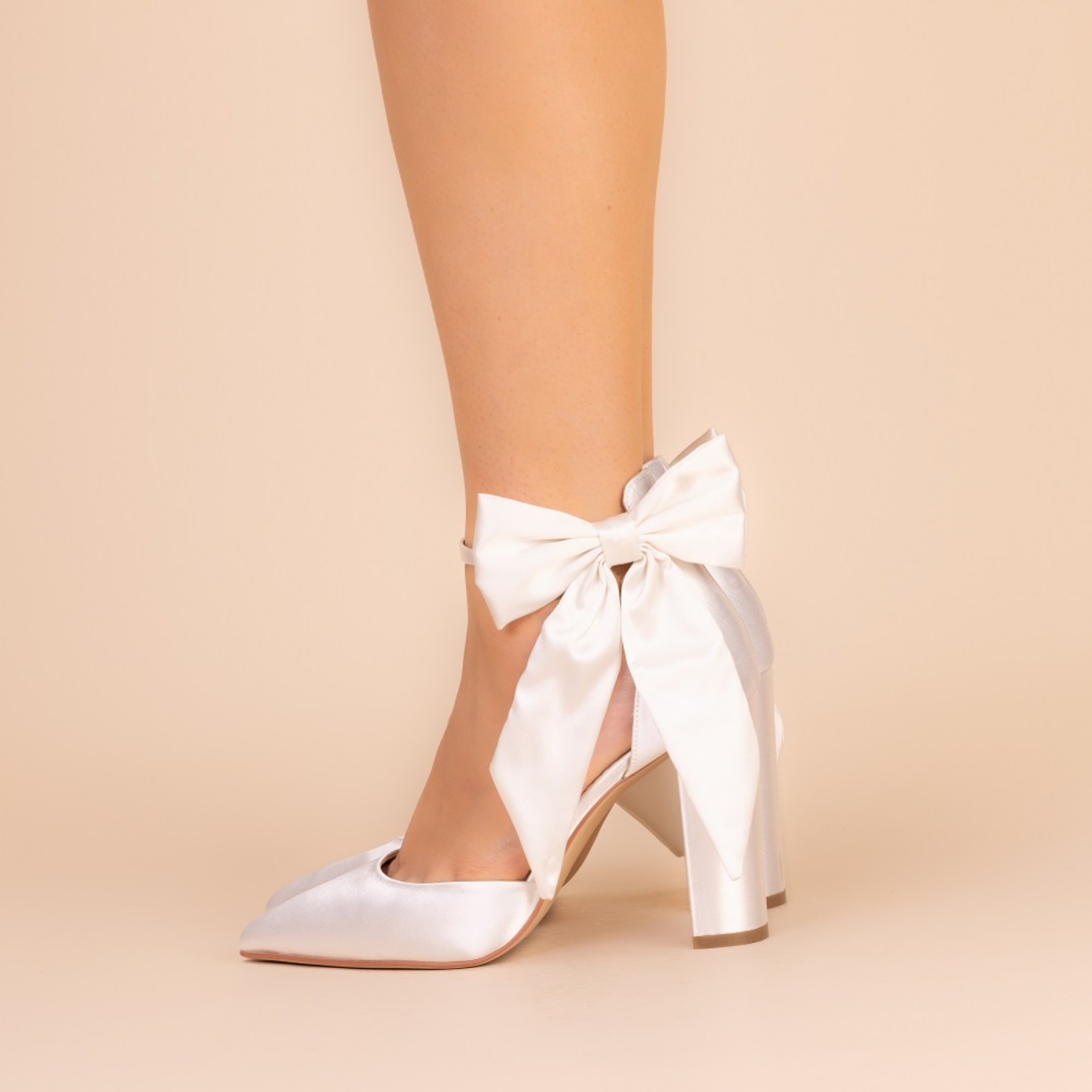 Arabella verwendet die Perfect Bridal charakteristische hohe Rückseite, die nicht nur atemberaubend aussieht, sondern auch den Knöchel für zusätzlichen Komfort stützt. Ein einfacher Knöchelriemen sorgt für eine verstellbare Passform und die übergroße Schleife kann entfernt werden, um zwei verschiedene Looks in einem Schuh zu erhalten, was Arabella super vielseitig macht.