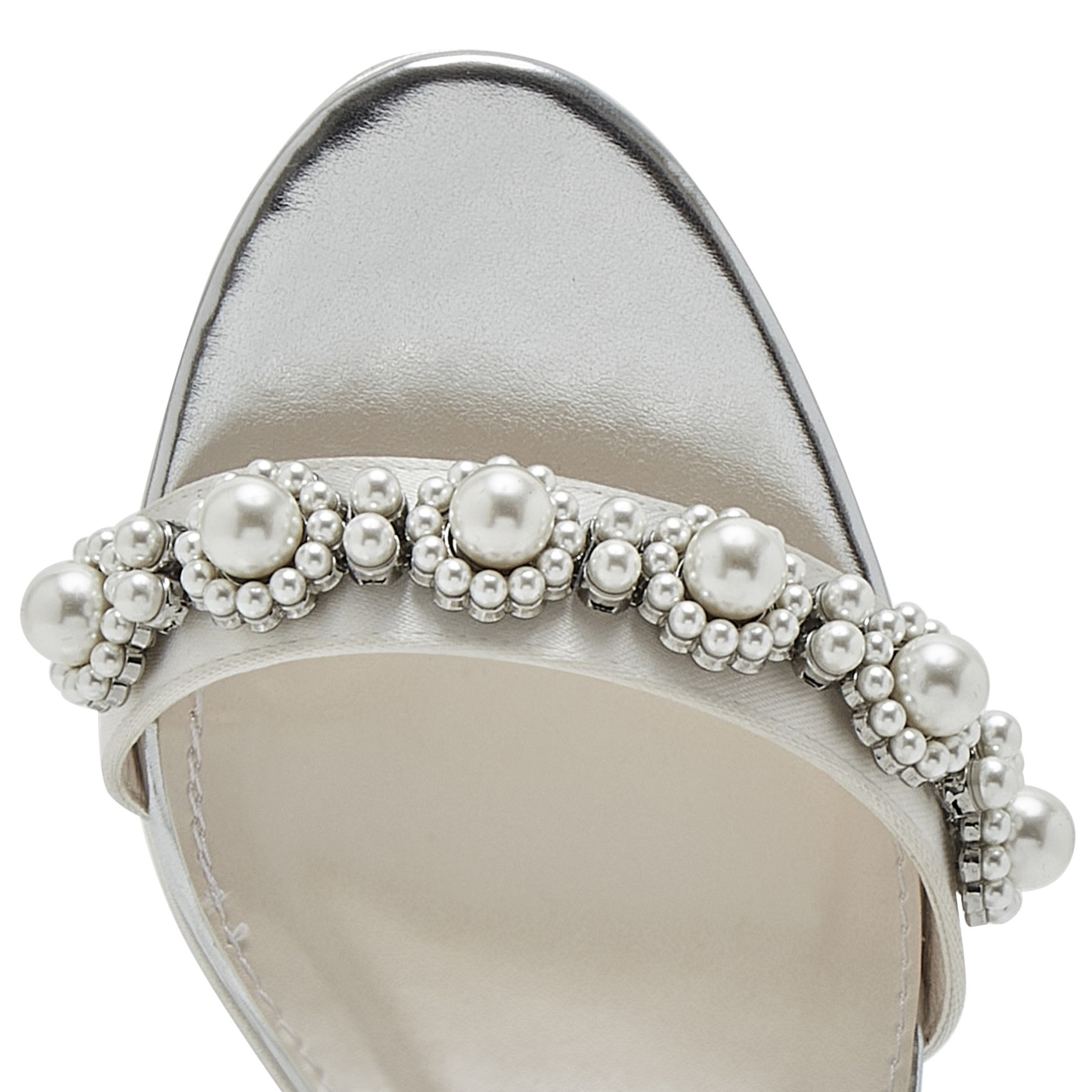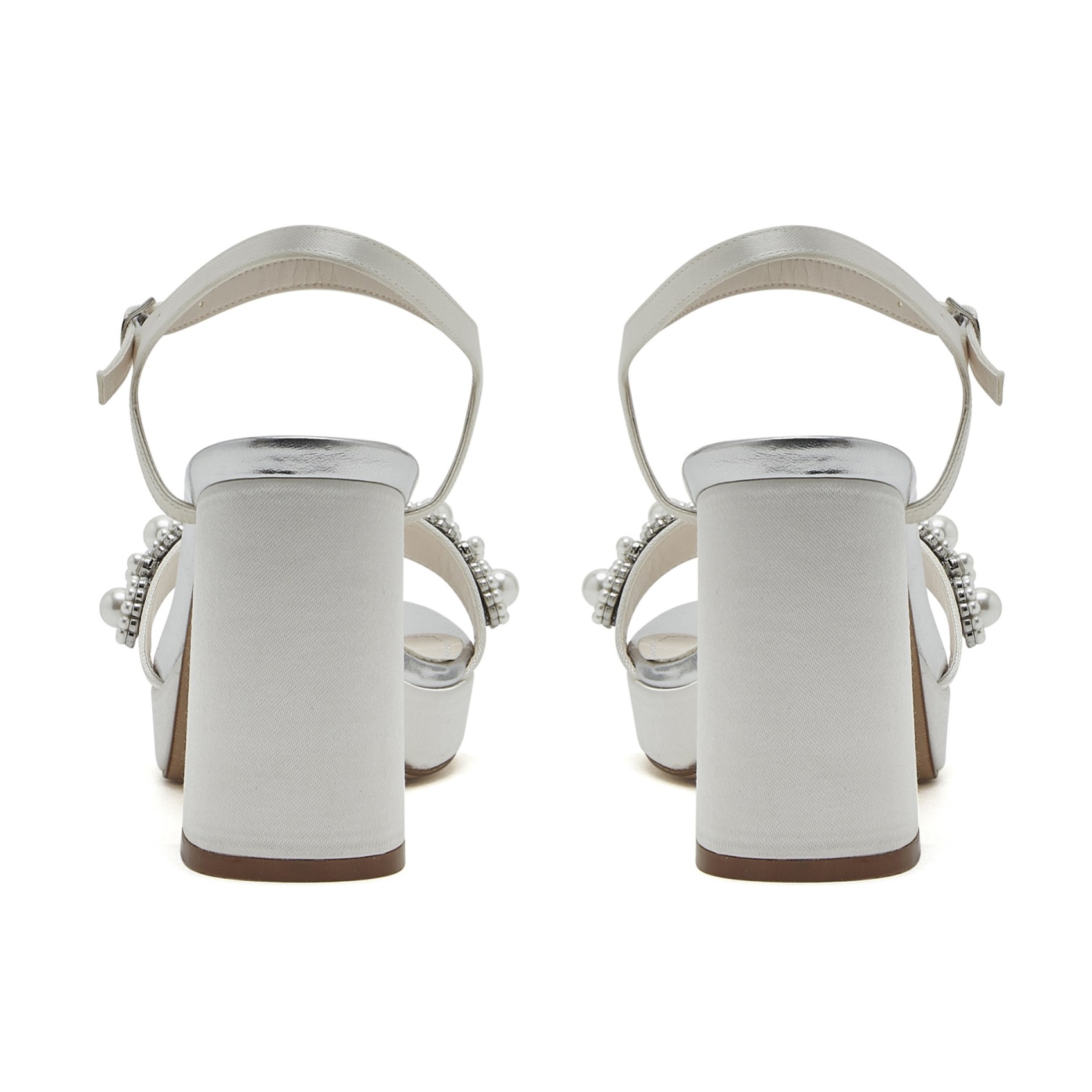 Amara, ein verspieltes Paar Plateau-Hochzeitsschuhe, ist der Inbegriff des beliebten Plateau-Trends. Amara hat einen einzelnen Riemen über den Zehen, der mit einem floralen 3D-Perlendetail verziert ist, einen stützenden silbernen Schnallen-Knöchelriemen und ist mit einem Blockabsatz ausgestattet. Ein echtes Statement, das auffällt und in jeder Farbe einfärbbar ist. Perfekt für Bräute, Brautjungfern oder Hochzeitsgäste, die ein Auge für das Extravagante haben.