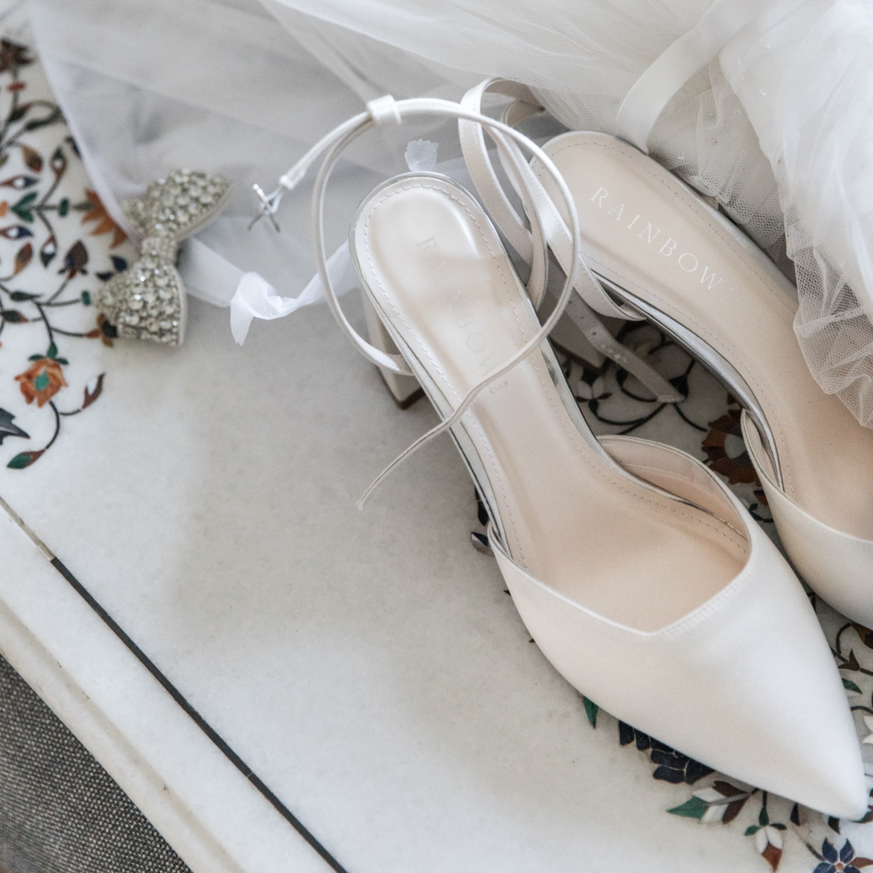 Wie bei allen Rainbow Club Brautschuhen werden Sie einen versteckten blauen Kristall in der Sohle als Ihr "something blue" entdecken. Dieser aufmerksame letzte Schliff ist unser kleiner Glücksbringer für Ihren besonderen Tag und ein echtes Zeichen für die Authentizität von Rainbow Club.