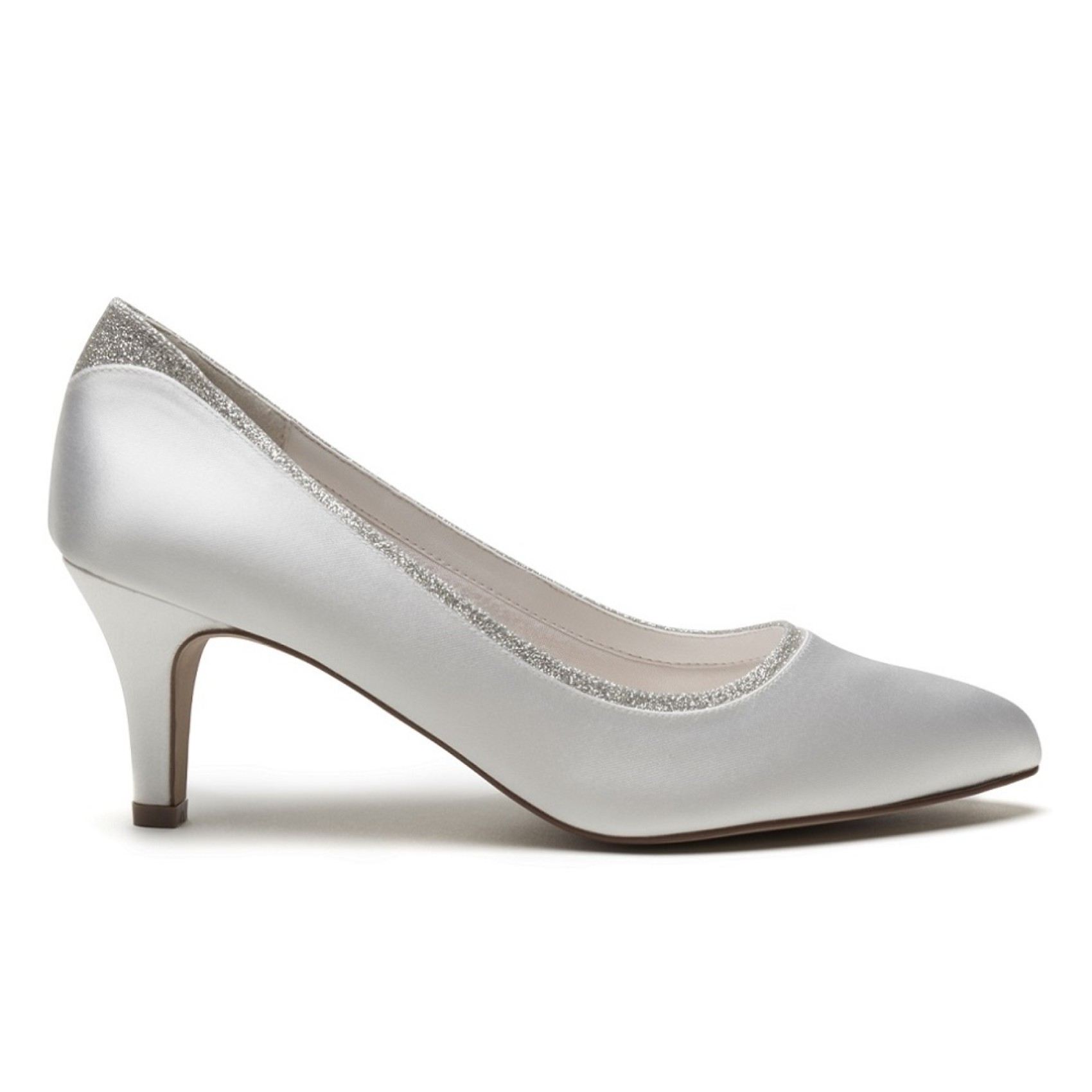 Ein atemberaubendes neues Modell in unserer Kollektion für weit geschnittene Schuhe: Jara. Dieser weit geschnittene Brautschuh aus schimmerndem elfenbeinfarbenem Satin hat eine runde Spitze, einen schlanken, halbhohen Absatz und ist mit einem silbernen, schimmernden Rand versehen, der einen Hauch von Glitzer verleiht. Ein Schuh, der Bräute mit einer minimalistischen Ästhetik ansprechen wird. Mit diesem stilvollen Schuh, der den ganzen Tag getragen werden kann, können Sie nichts falsch machen!