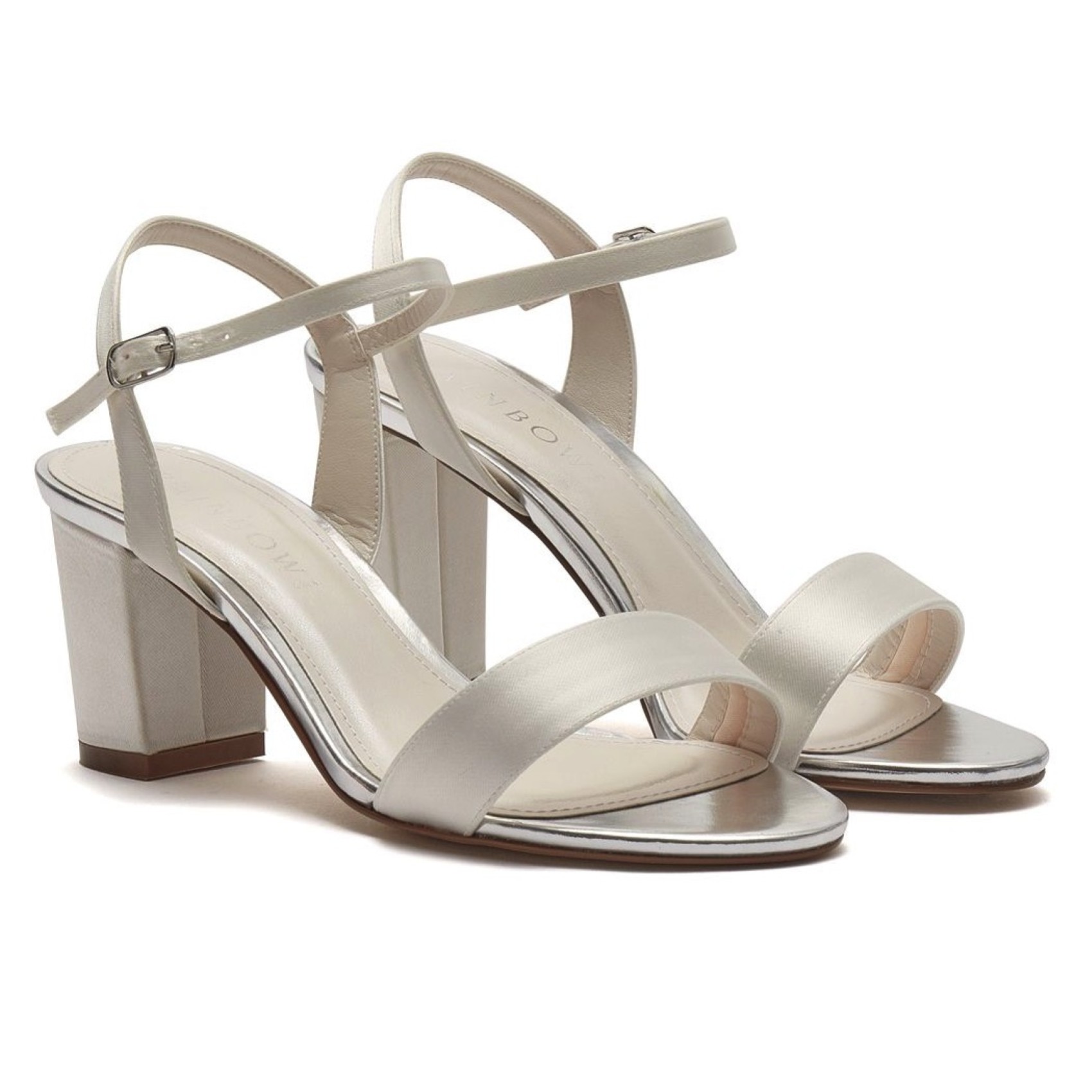 Unsere neuen Margot Riemchensandalen sind schick und unaufdringlich. Sie sind perfekt für Bräute, die bei ihren Hochzeitsschuhen Schlichtheit suchen. Die hübschen Sandalen aus elfenbeinfarbenem Satin haben einen einzelnen Riemen über den Zehen, der das glamouröse silberne Leder, das Futter und die Verzierungen, die zarten Knöchel- und Slingback-Riemen und den ganztägig tragbaren Blockabsatz enthüllt. Die perfekten Brautschuhe für Komfort und Stil können auch eingefärbt werden, damit sie zum Outfit der Brautjungfern, der Mutter der Braut oder der Hochzeitsgäste passen.