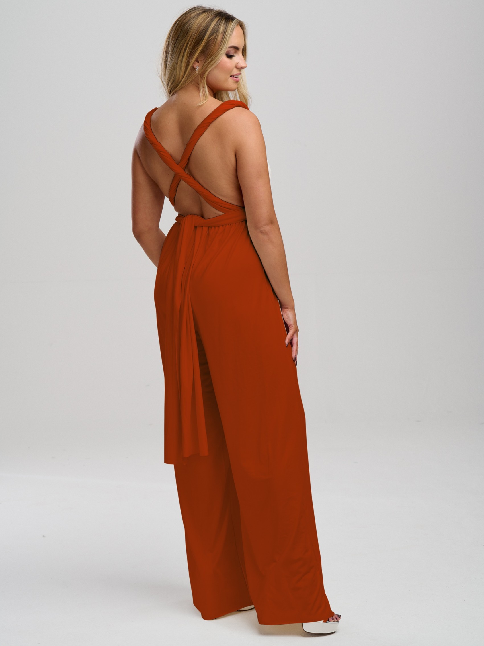 Unser luxuriöser, vorrätiger rostfarbener Mehrweg-Overall ist die perfekte Lösung für alle Ihre Brautjungfern. Dieser rostfarbene Brautjungfern-Overall ist aus schwerem, geschmeidigem Stretch-Stoff handgefertigt, fühlt sich superweich an und kann auf unzählige Arten getragen werden, um jeder Größe und Form gerecht zu werden. Infinity Jumpsuits sind perfekt für Brautjungfern, die sich nicht sicher sind, für welchen Stil sie sich entscheiden sollen (Sie können sich buchstäblich am Morgen der Hochzeit entscheiden!) Sie sind auch ideal für Brautjungfern in der Schwangerschaft, da der dehnbare Bund über den Bauch gelegt werden kann.
