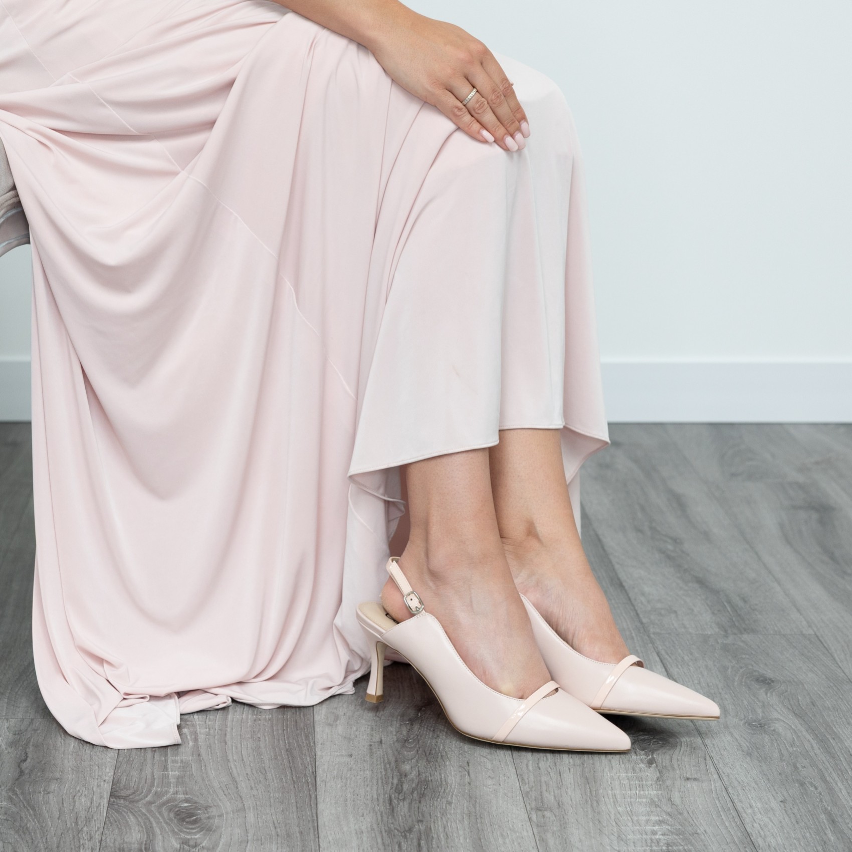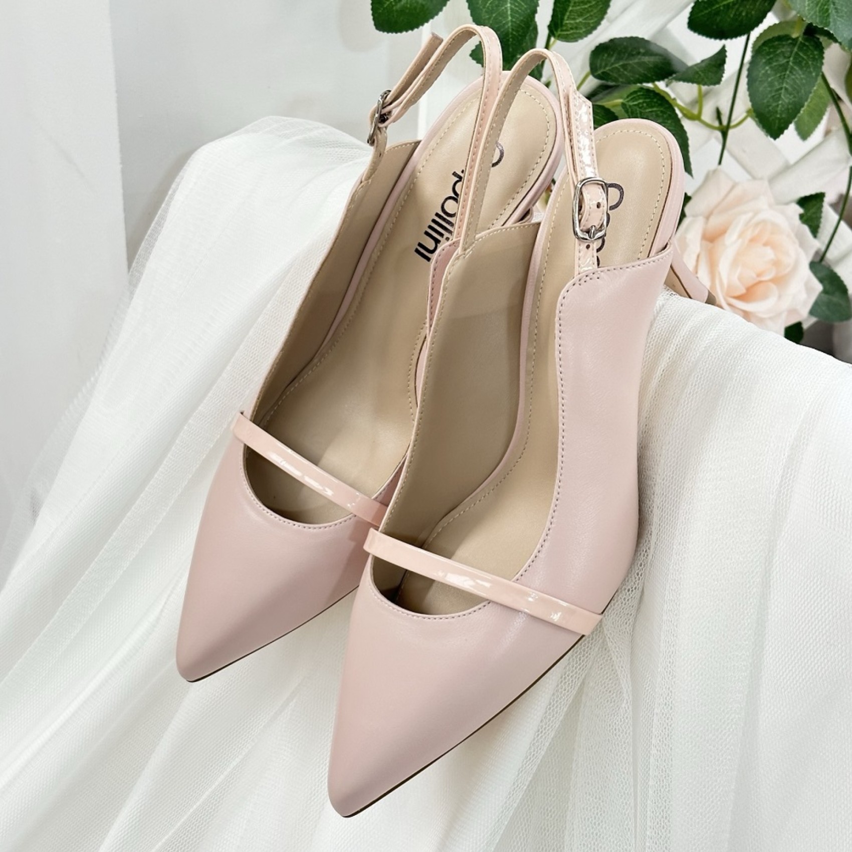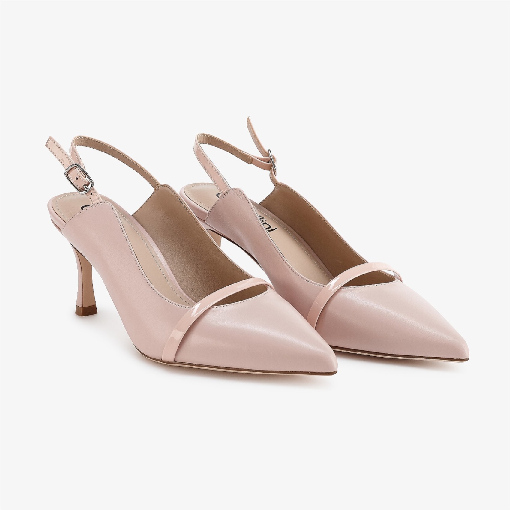 Emory ist eine moderne Variante des traditionellen Slingbacks. Das Modell aus weichem rosa Leder hat eine elegante spitze Spitze, einen verstellbaren Slingback und ist mit einem kontrastierenden rosa Lackband an der Spitze versehen. Mit einem 7 cm hohen Mittelabsatz und einer gepolsterten Innensohle aus Leder bieten diese raffinierten rosafarbenen Absätze ganztägigen Tragekomfort. Perfekt für die Mutter der Braut oder die Hochzeitsgäste.