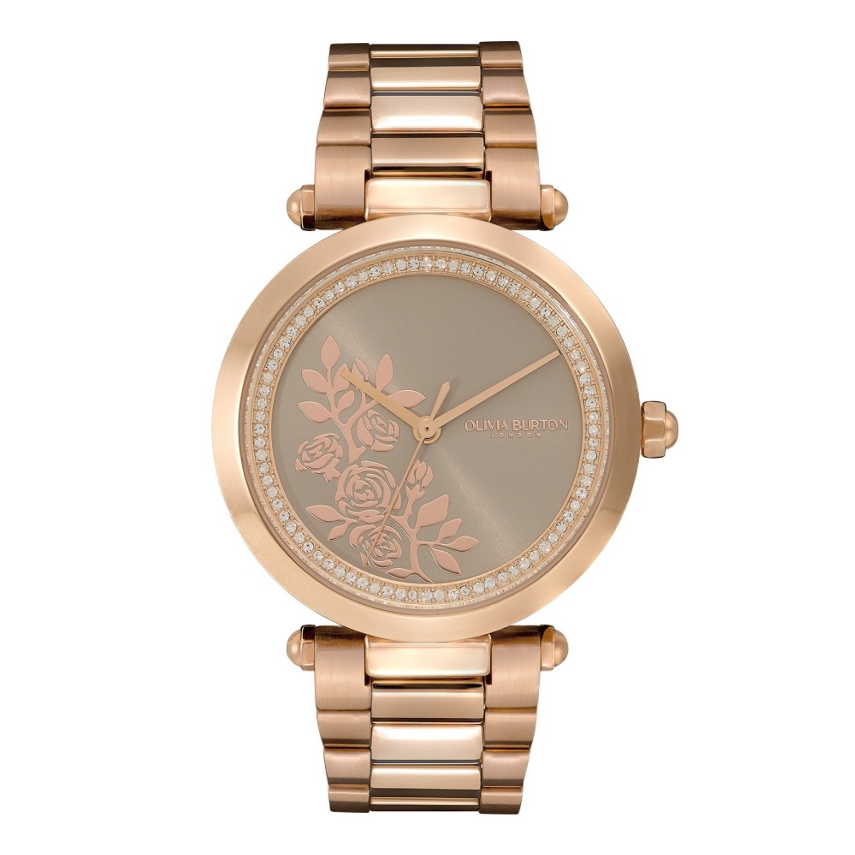 Olivia Burton Floral 34mm Armbanduhr in Roségold mit Kristalldetails | 24000044