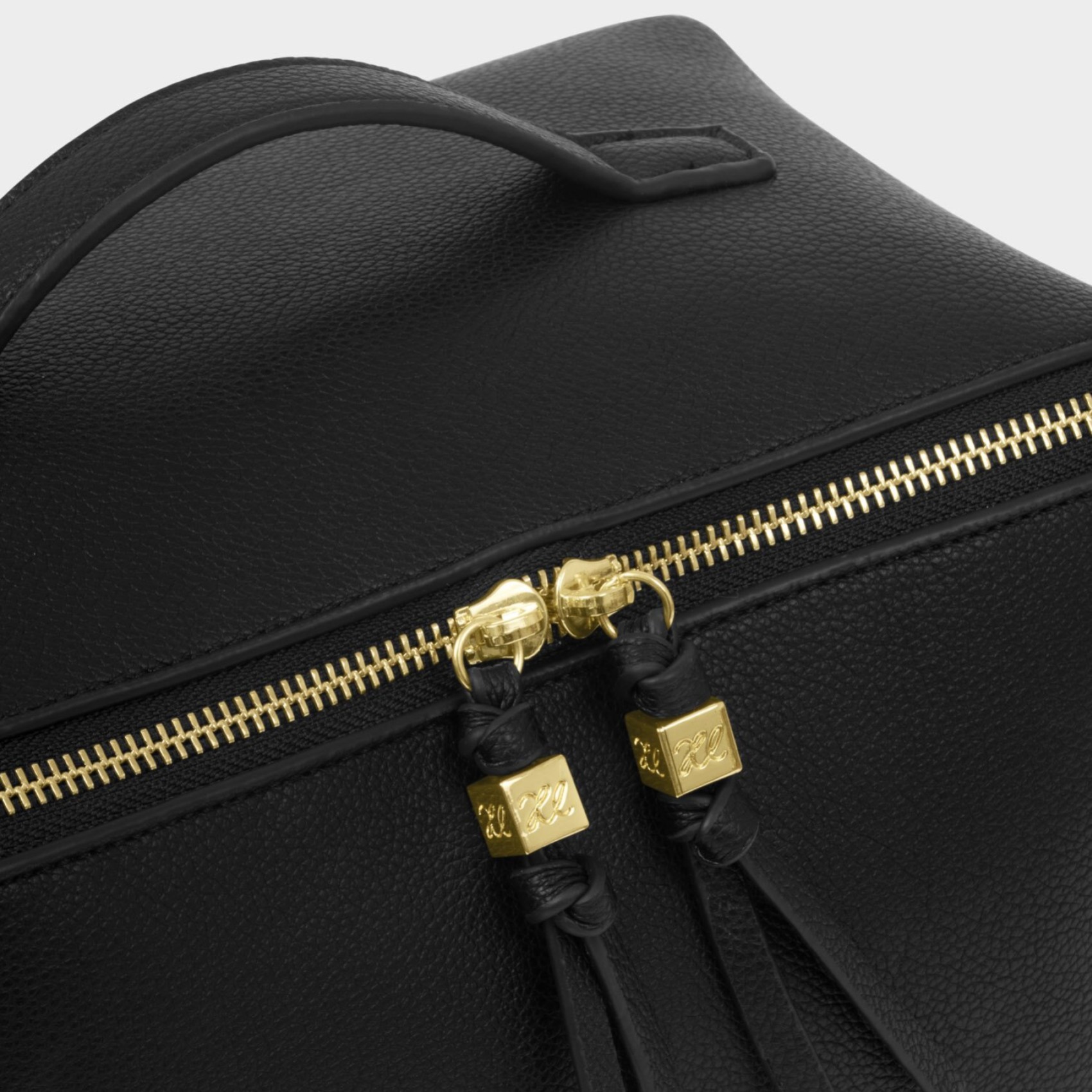 Mit der Soho Large Makeup and Wash Bag in Schwarz von Katie Loxton haben Sie Ihre Beauty-Essentials auch unterwegs immer griffbereit. Sie verfügt über eine praktische Trennwand in der Mitte, elastische Einsteckfächer und einen Reißverschluss mit goldenen Quasten für einen Hauch von Luxus. Sie ist der perfekte Partner für die passende Soho Weekend Bag.