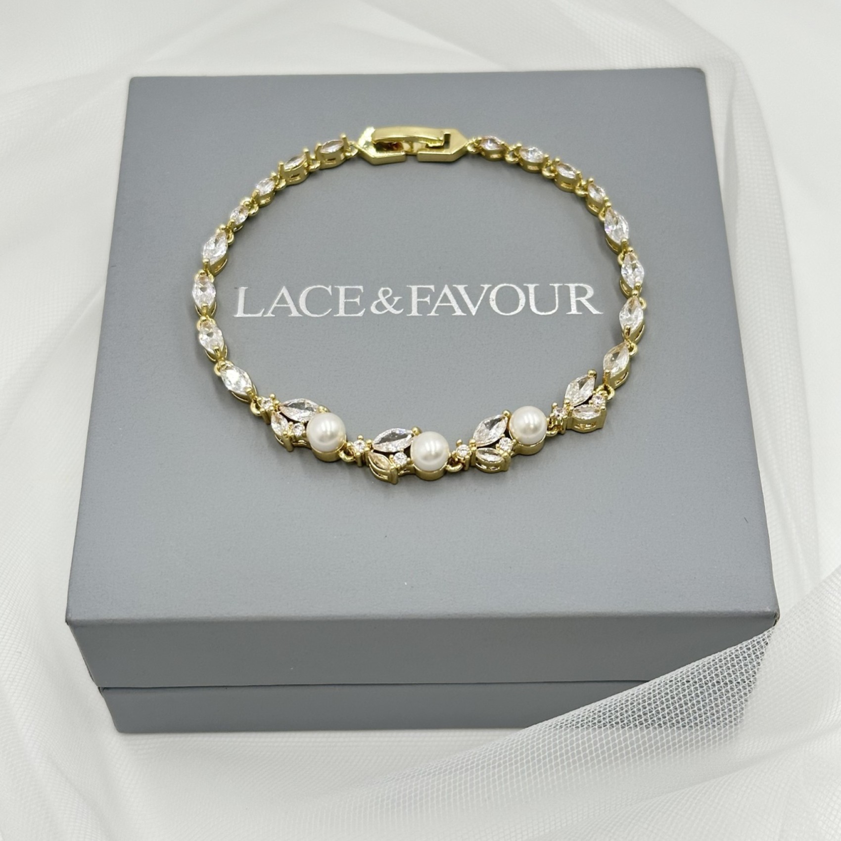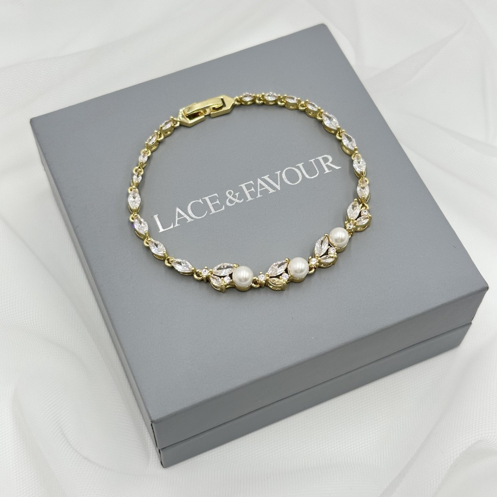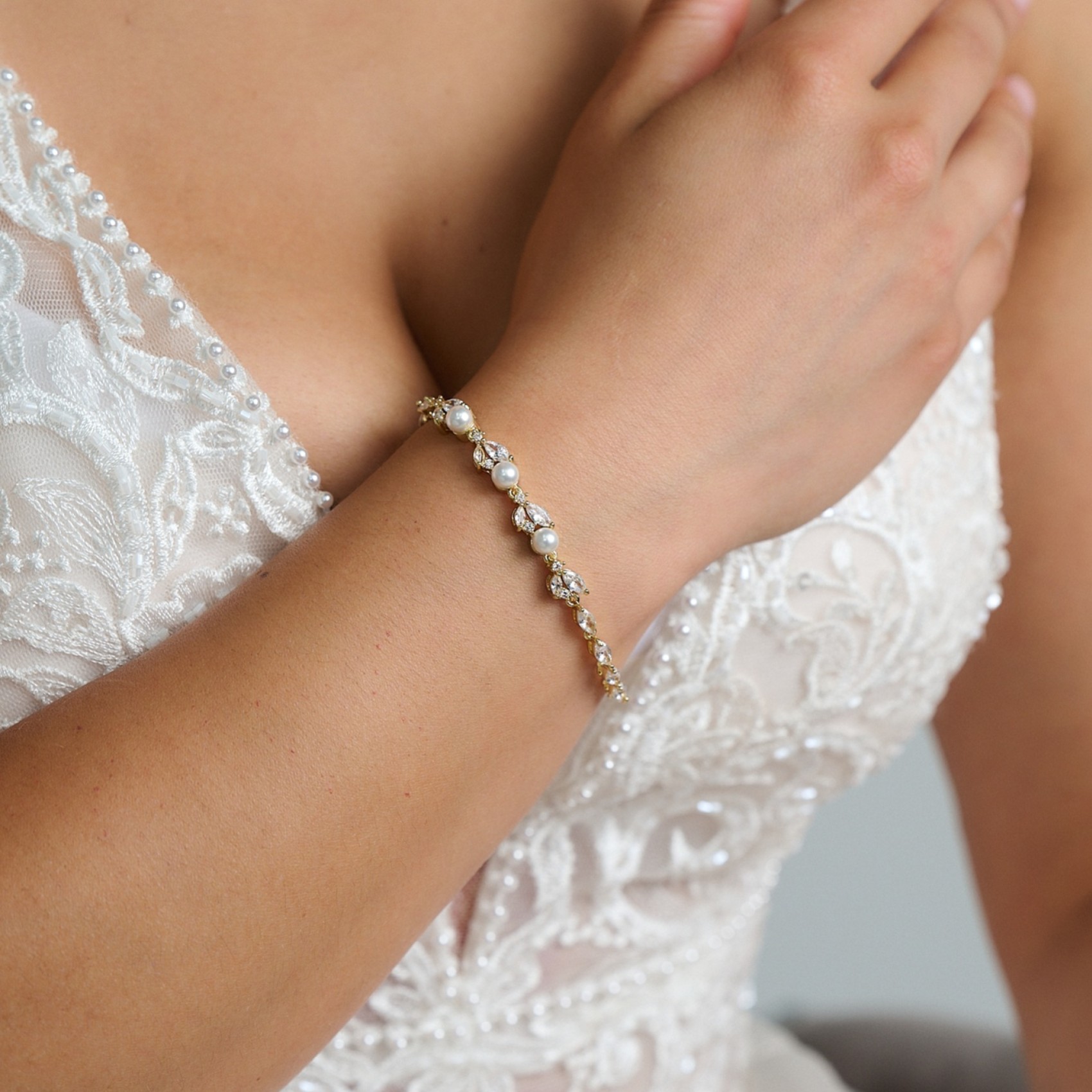 Tamara Gold Cubic Zirconia and Pearl Wedding Bracelet | LFXTAMB02