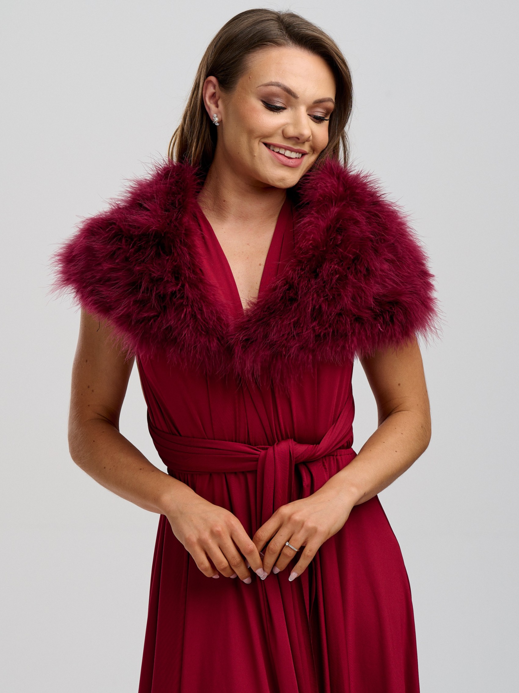 Beautifully soft and elegant in styling the Scarlet stole wraps around the shoulders to add warmth and glamour to your look. Made with real marabou feathers, this burgundy wedding wrap is an absolute essential for those chillier months. This feather stole also makes a gorgeous bridesmaid accessory too! Complete with hook and eye fastenings.