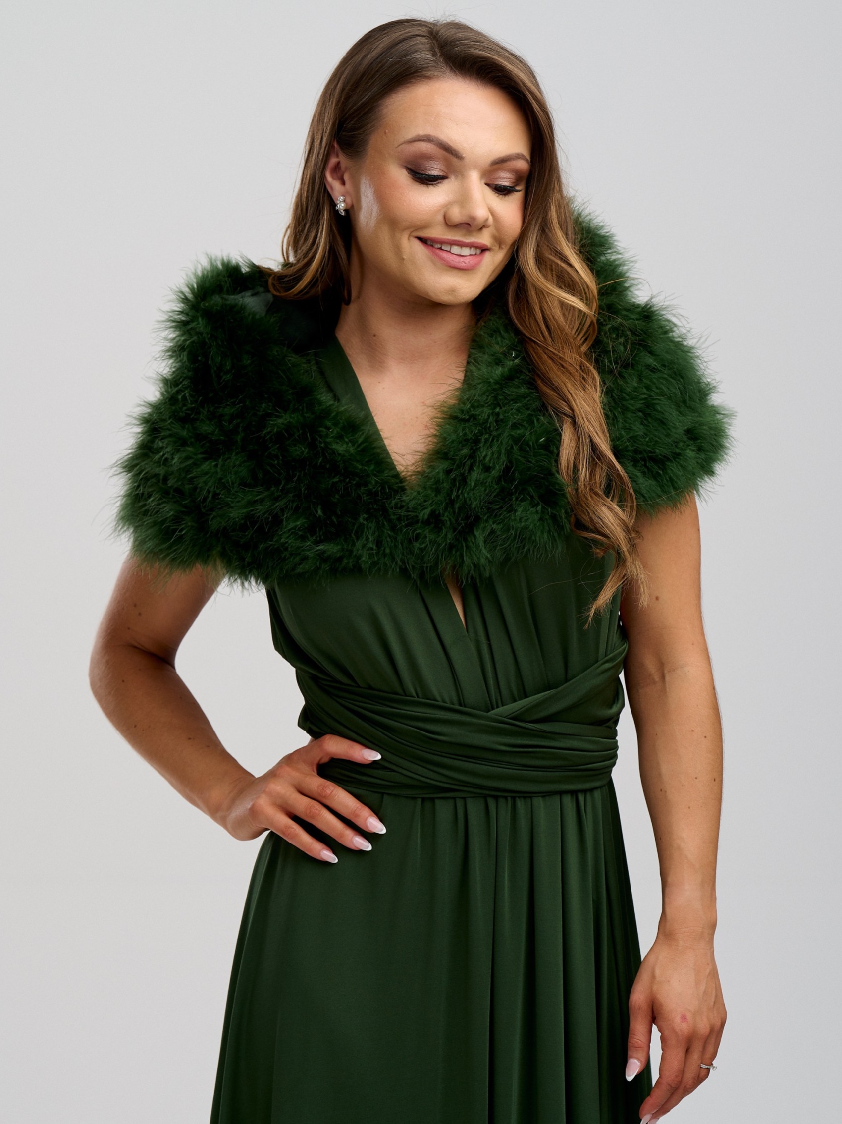 Magnifiquement douce et élégante, l'étole Scarlet s'enroule autour des épaules pour ajouter chaleur et glamour à votre look. Fabriquée avec de véritables plumes de marabout, cette étole de mariage vert olive est absolument indispensable pour les mois les plus froids. Cette étole en plumes est également un magnifique accessoire pour les demoiselles d'honneur ! Elle se ferme à l'aide de crochets et d'œillets.