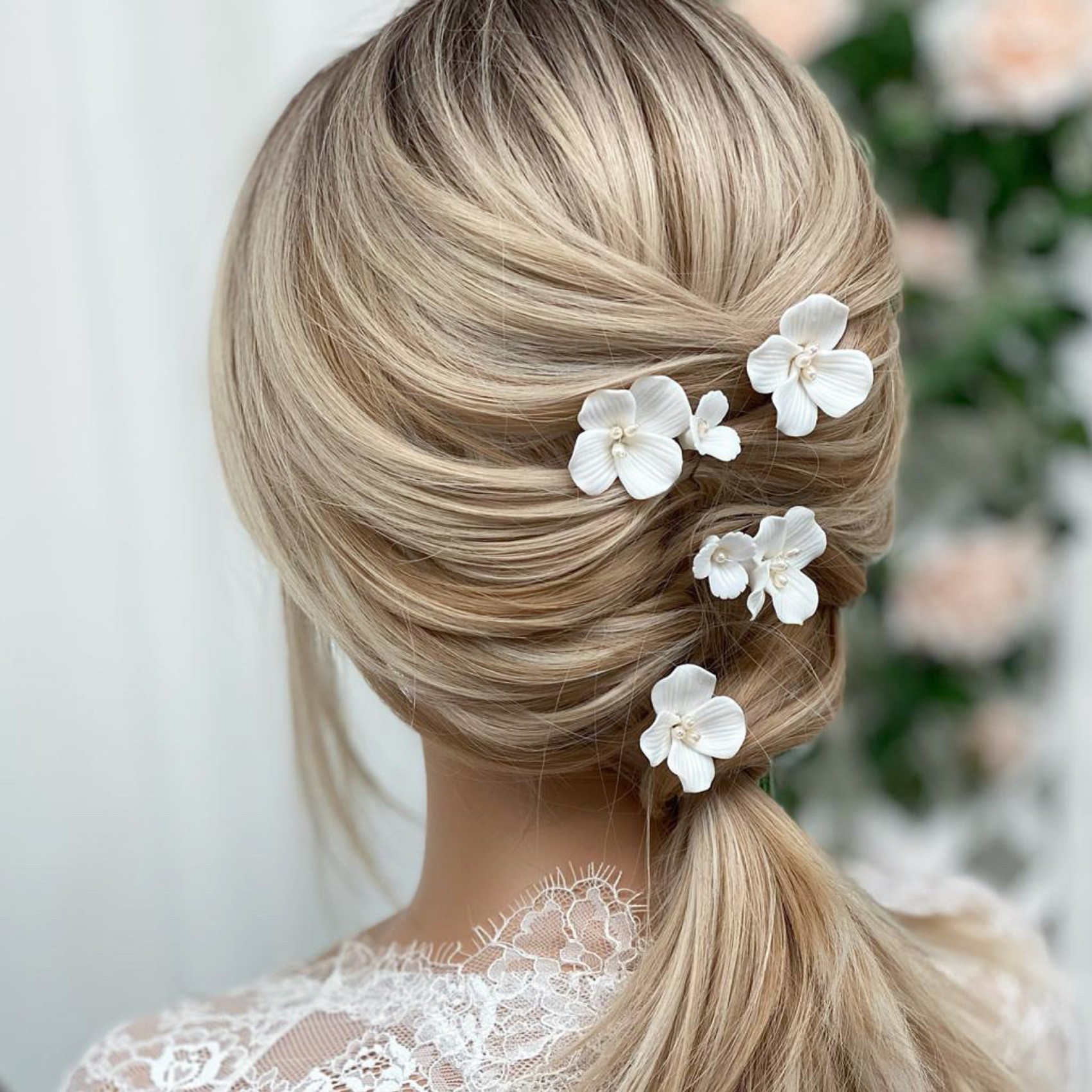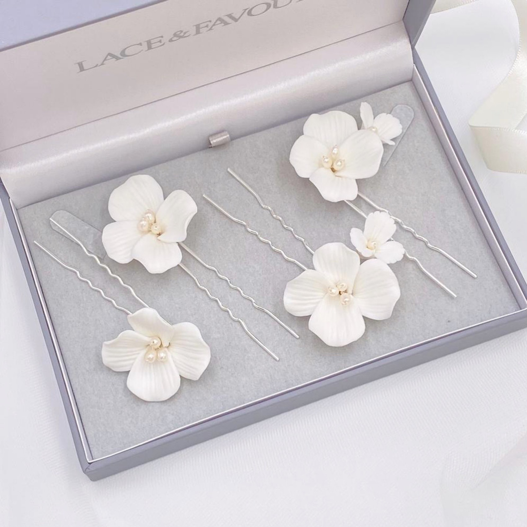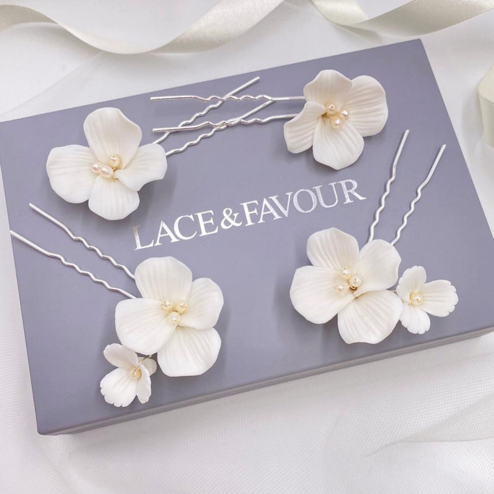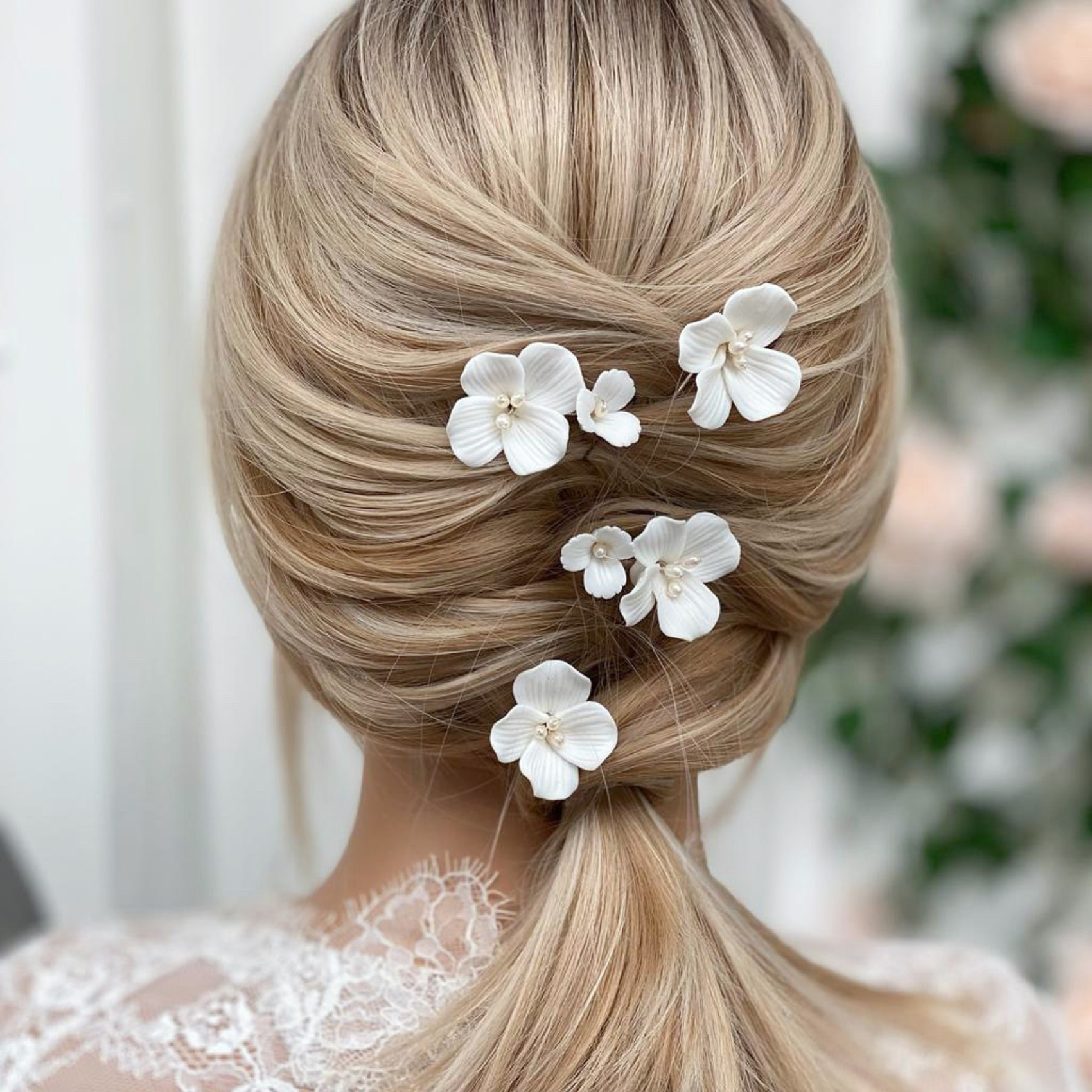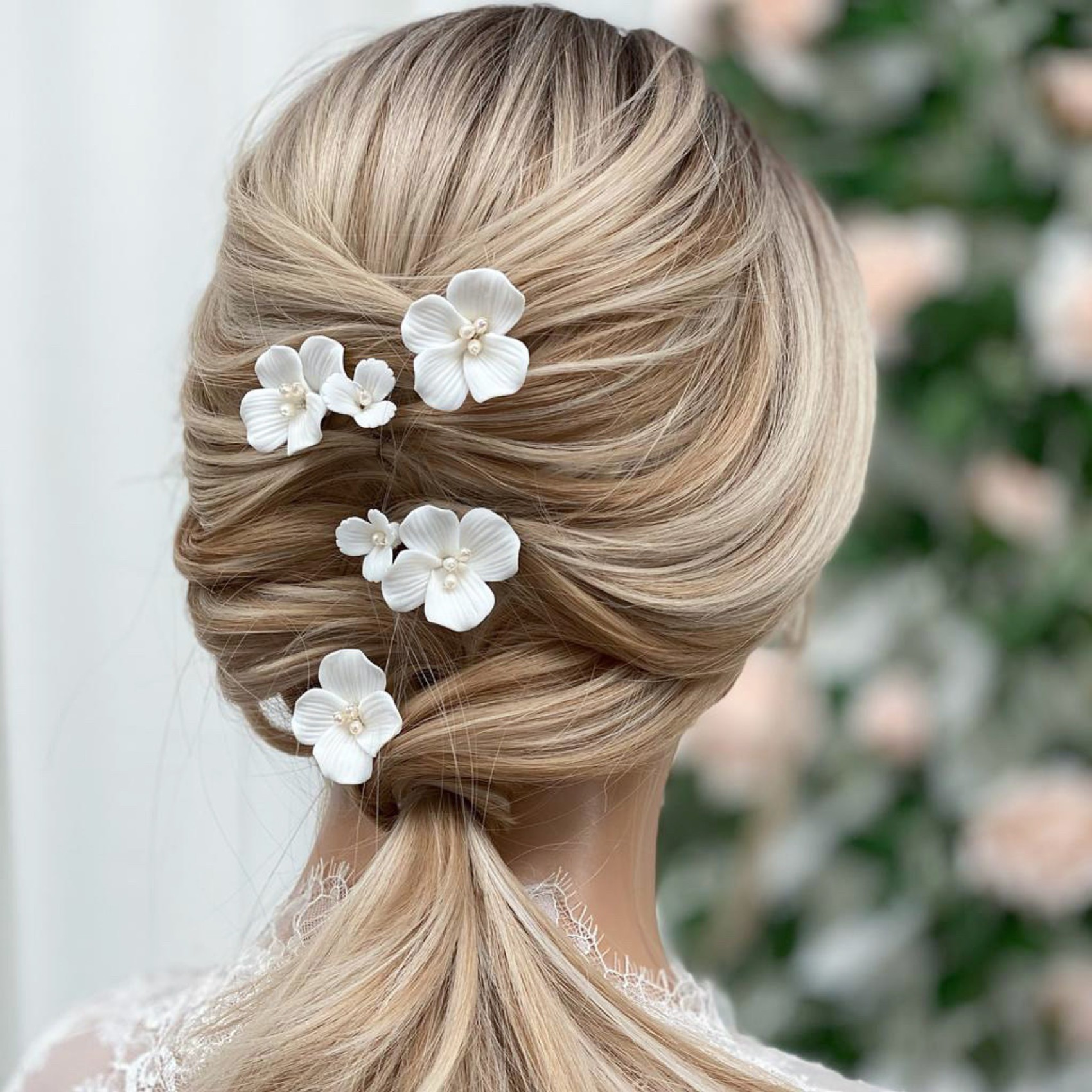 Voici Paradise, notre nouvelle épingle à cheveux de mariée préférée ! De magnifiques fleurs en céramique fabriquées à la main, décorées de perles ivoires au centre et de caractères découpés en pétales. Éparpillez ces épingles dans n'importe quelle coiffure de mariage pour obtenir le plus joli des accents floraux. Vendues par lot de 2, une grande fleur unique et une grappe de deux fleurs, une grande et une petite.