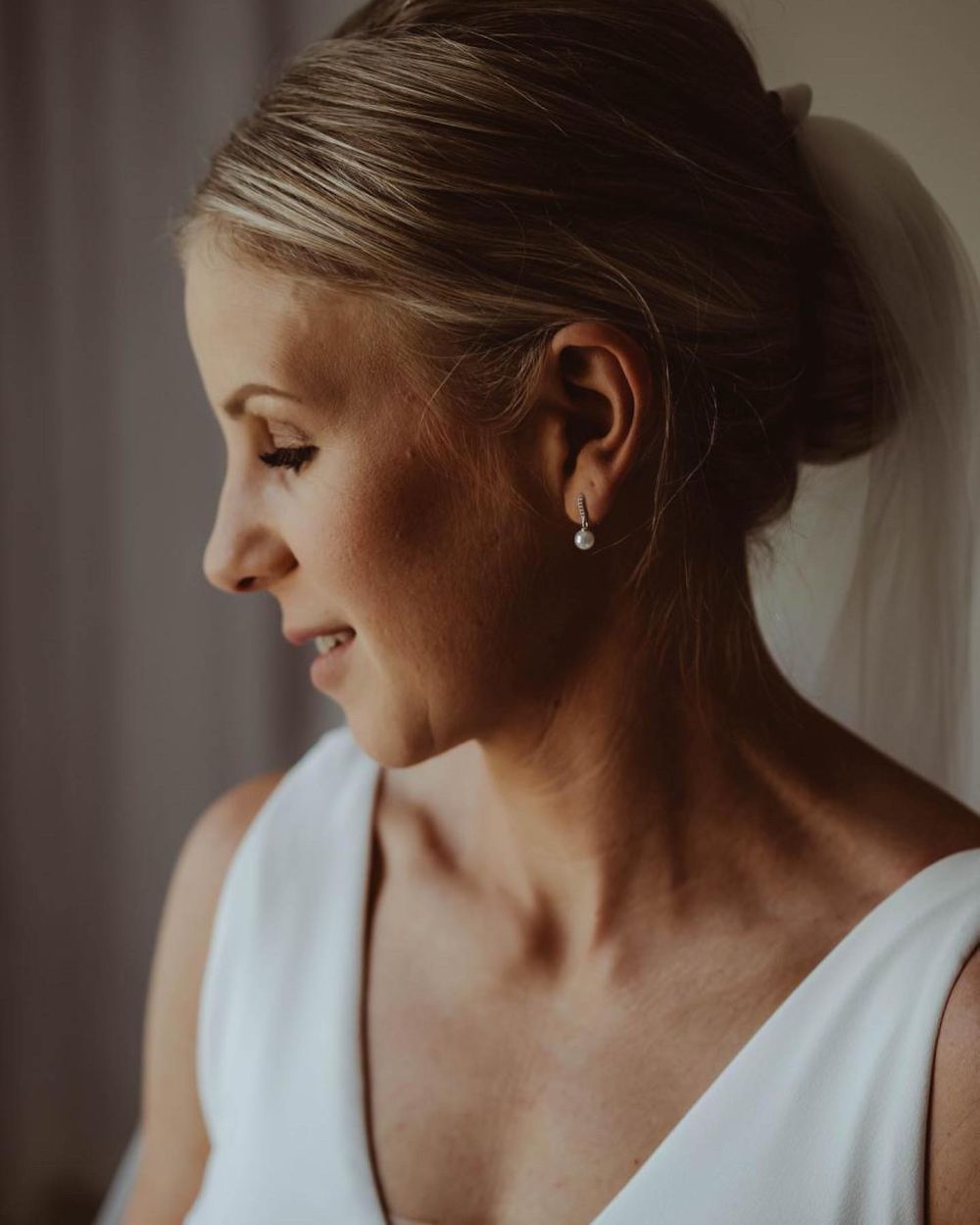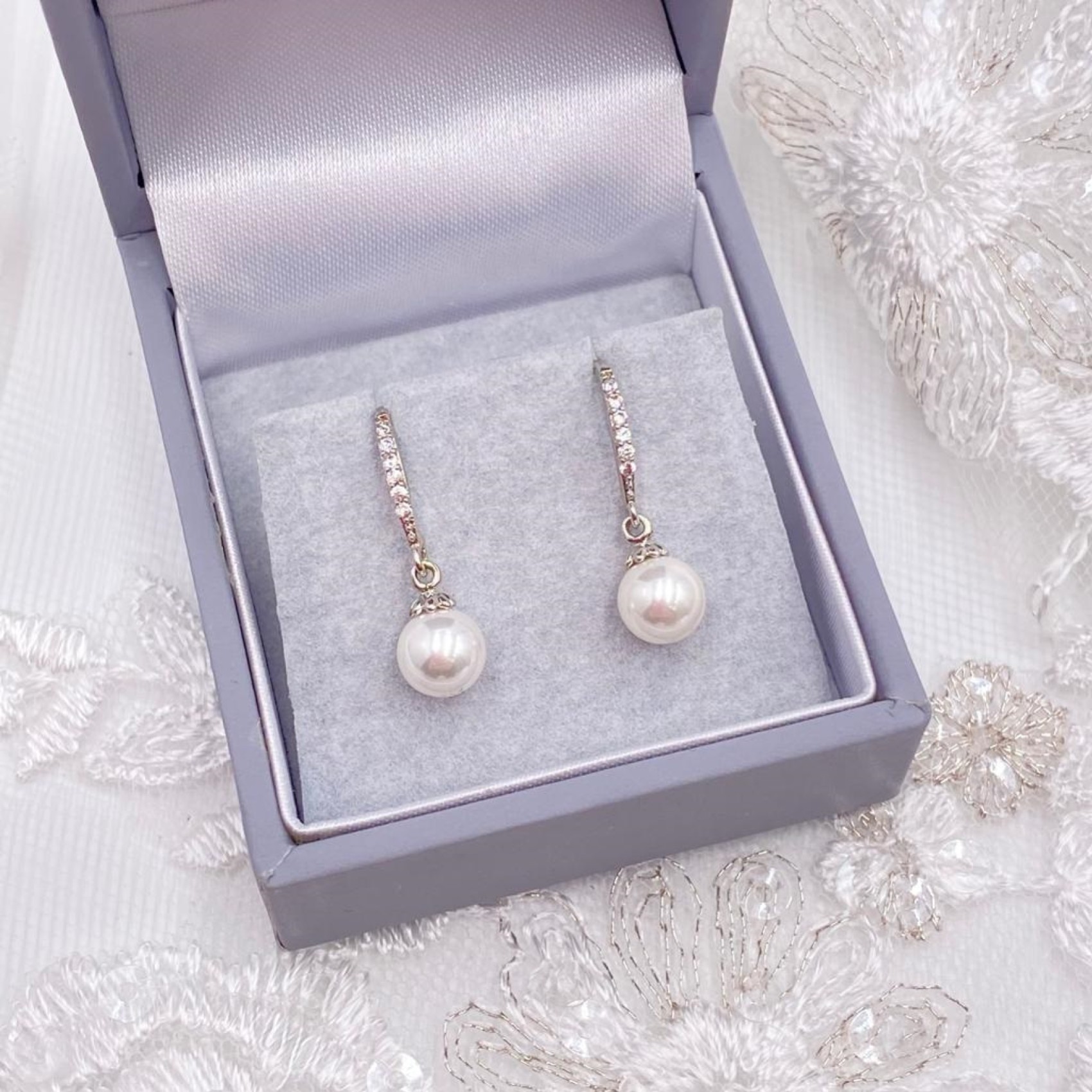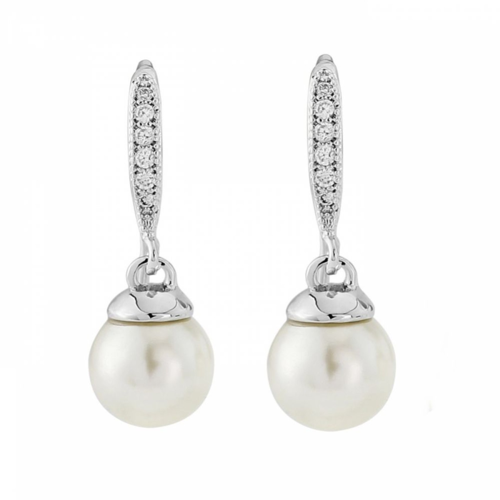 Une jolie paire de boucles d'oreilles de mariage en cristal et perle au design délicat, avec une seule rangée de pierres CZ claires scintillantes, finies par une perle ivoire scintillante. Parfaites pour les mariées et les demoiselles d'honneur.