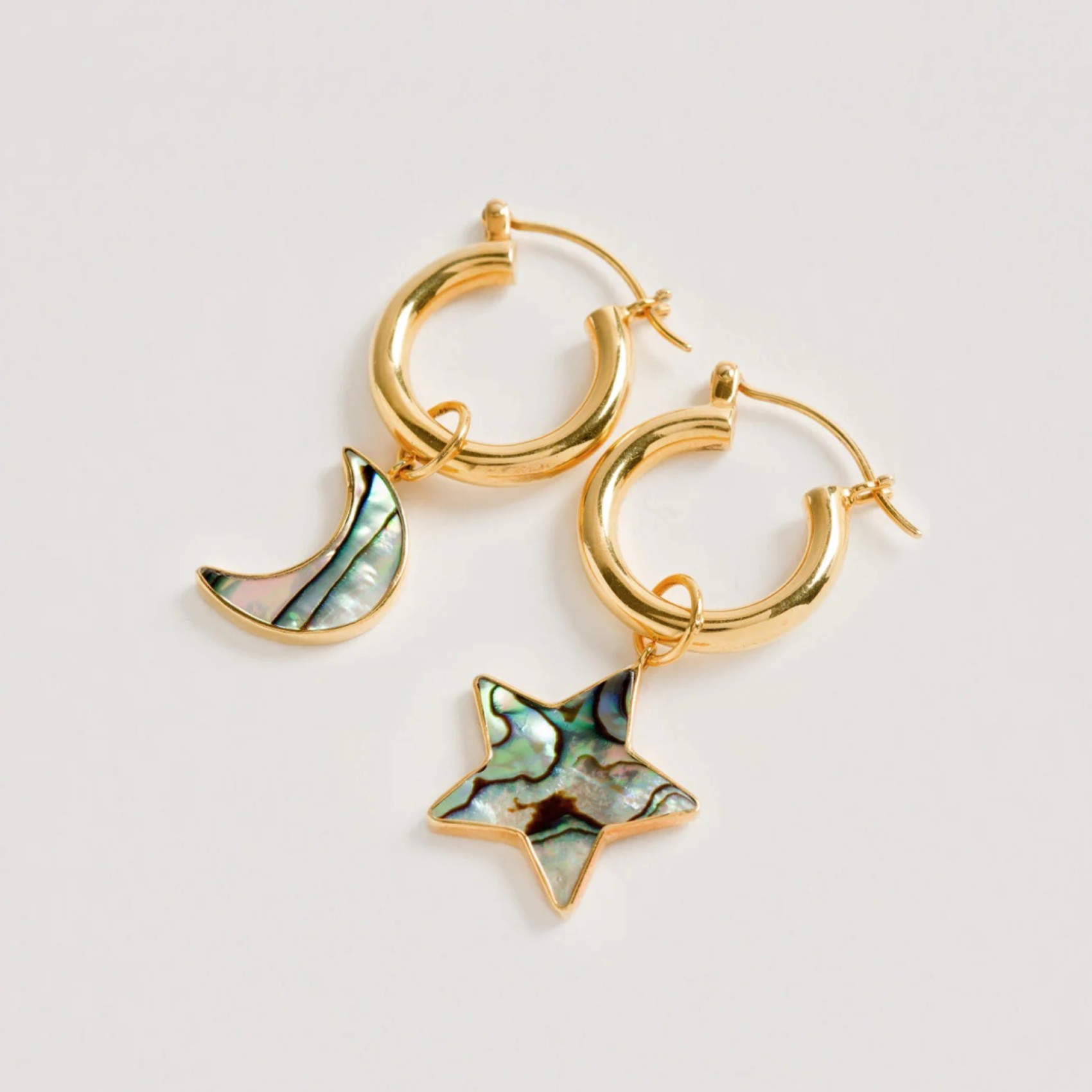 Freya Rose Mini-cerceaux en or avec étoile et lune en paua | PAUASTARANDMOON-FR
