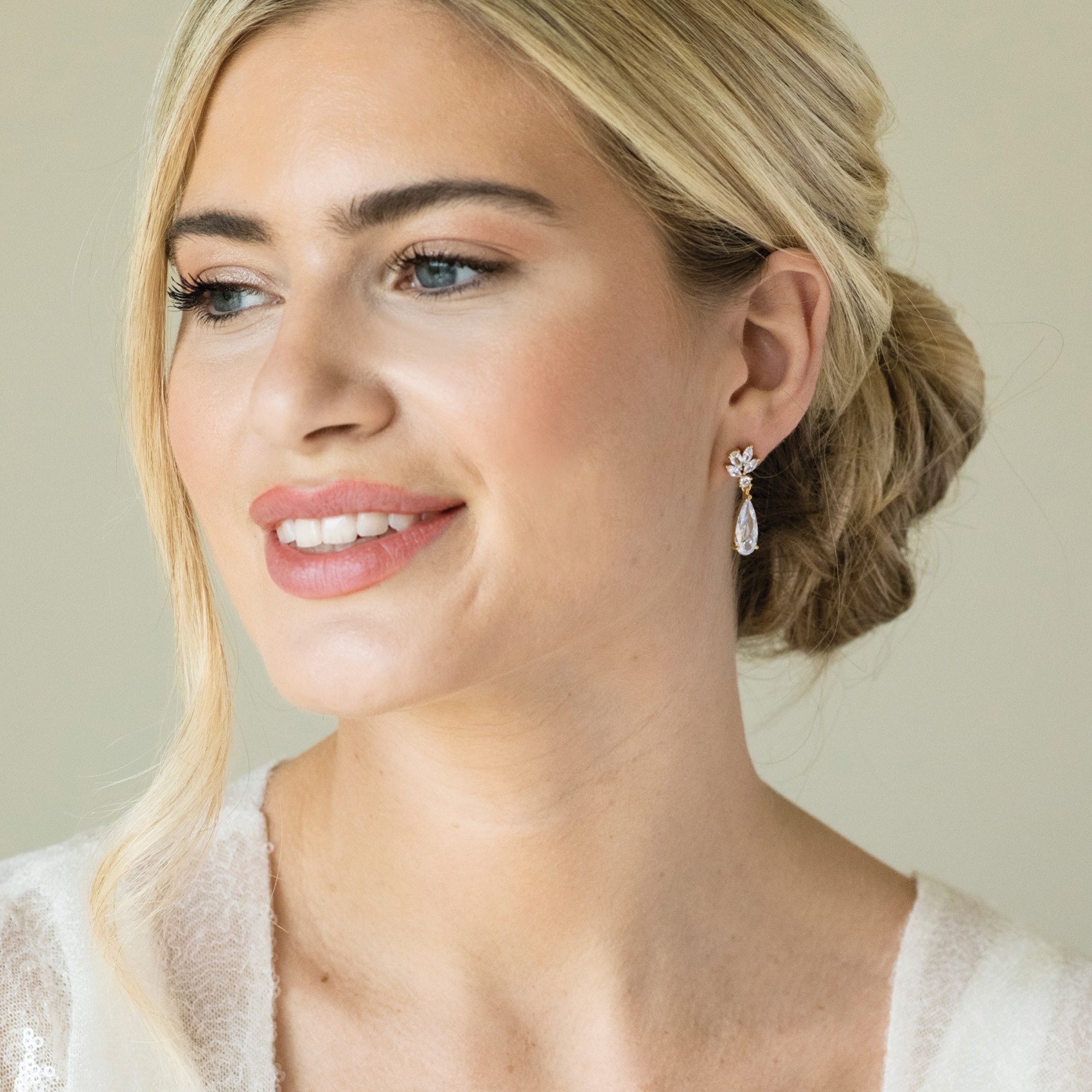 Une grappe de pierres en zircon cubique suspend un cristal de larme allongé dans ces boucles d'oreilles intemporelles de taille moyenne de Ivory & Co. Elégantes et polyvalentes, ces boucles d'oreilles en or sont idéales pour les mariées, les demoiselles d'honneur ou les bals de fin d'année.
