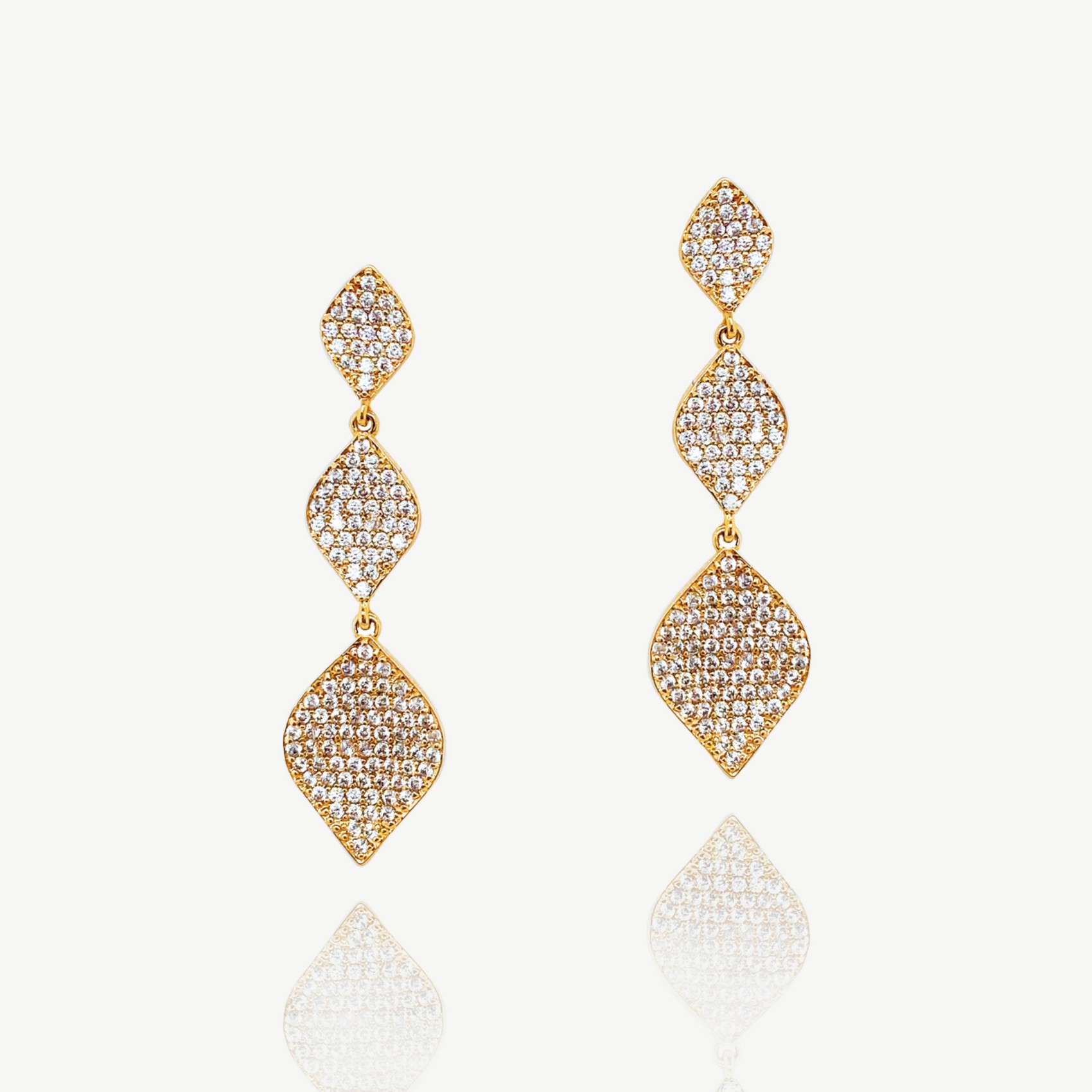 Ivory and Co Rochelle Boucles d'oreilles triple goutte en or avec pavés de cristal | ROCHELLEEGO-IVC