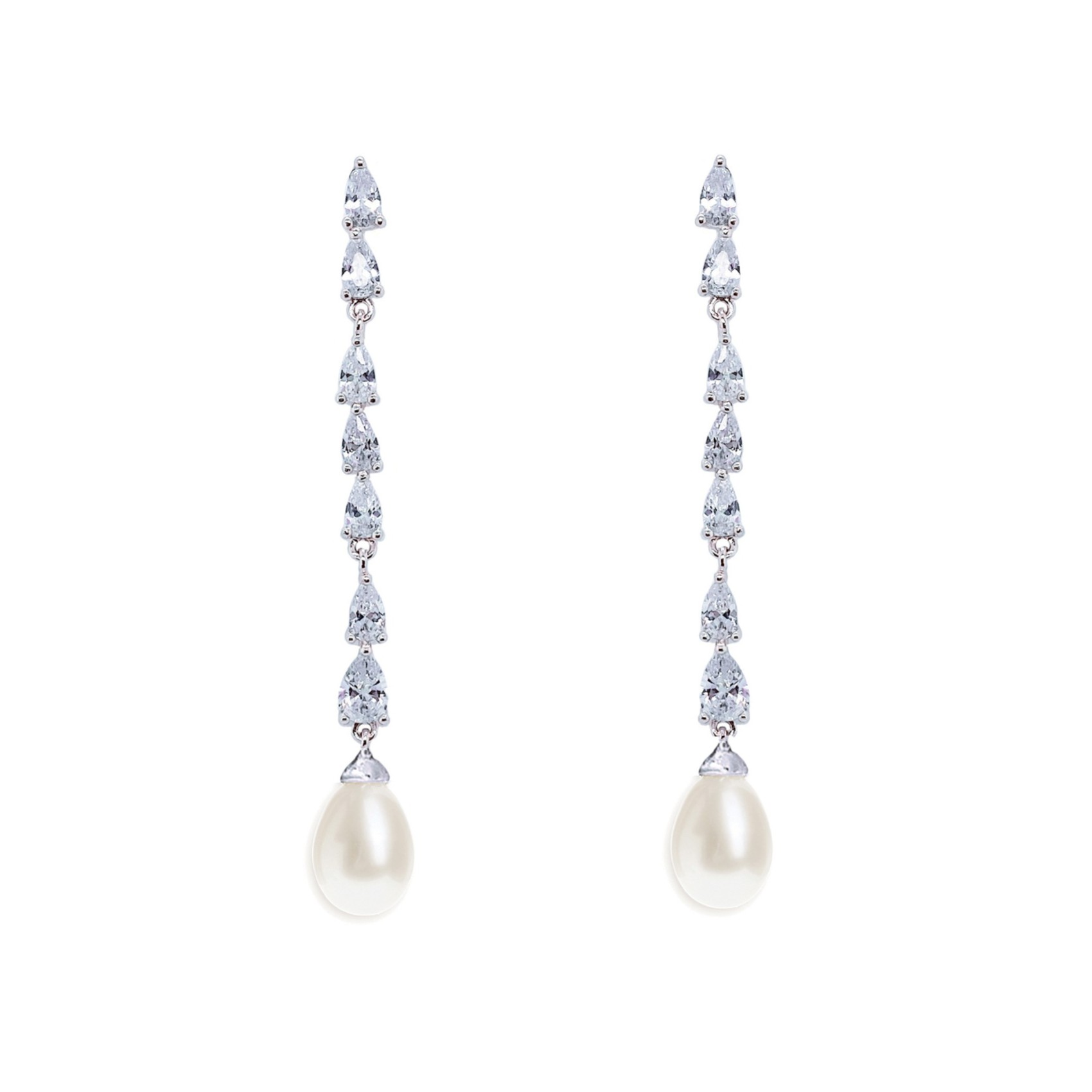 Les boucles d'oreilles de mariage sont de retour sur la scène de la mode nuptiale comme une grande tendance ! Le nouveau modèle Melbourne combine le style d'un designer de pointe et des cristaux facettés étincelants dans une goutte sophistiquée pour un impact maximal. Les boucles d'oreilles Melbourne sont composées d'une seule ligne de zircon cubique en forme de larme et d'une goutte d'eau en perle ivoire. Ce design intemporel avec une touche contemporaine ajoutera un élément frappant à n'importe quel look de mariée.