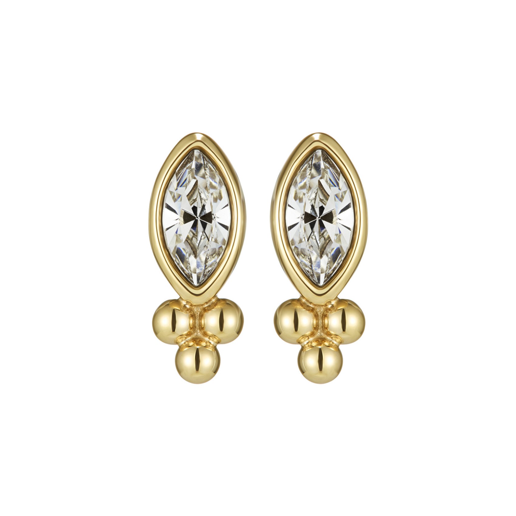 Le vintage rencontre le contemporain avec ces délicats clous d'oreilles plaqués or. Chacun d'entre eux est orné d'une breloque en cristal navette taillée en marquise et d'un trio de minuscules perles de caviar. Nous adorons les associer à une paire de boucles d'oreilles Olivia Burton pour un look superposé. Un beau cadeau pour une mariée ou une demoiselle d'honneur.