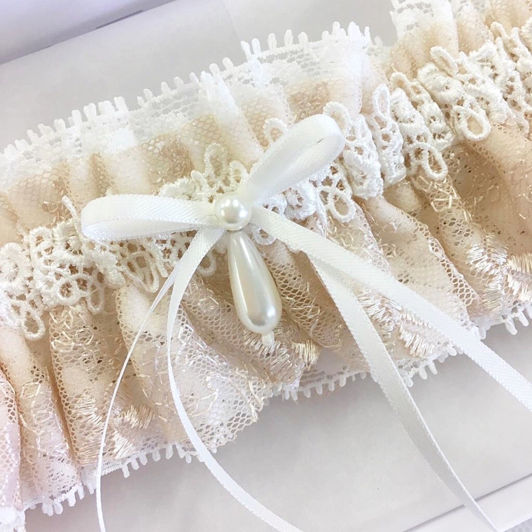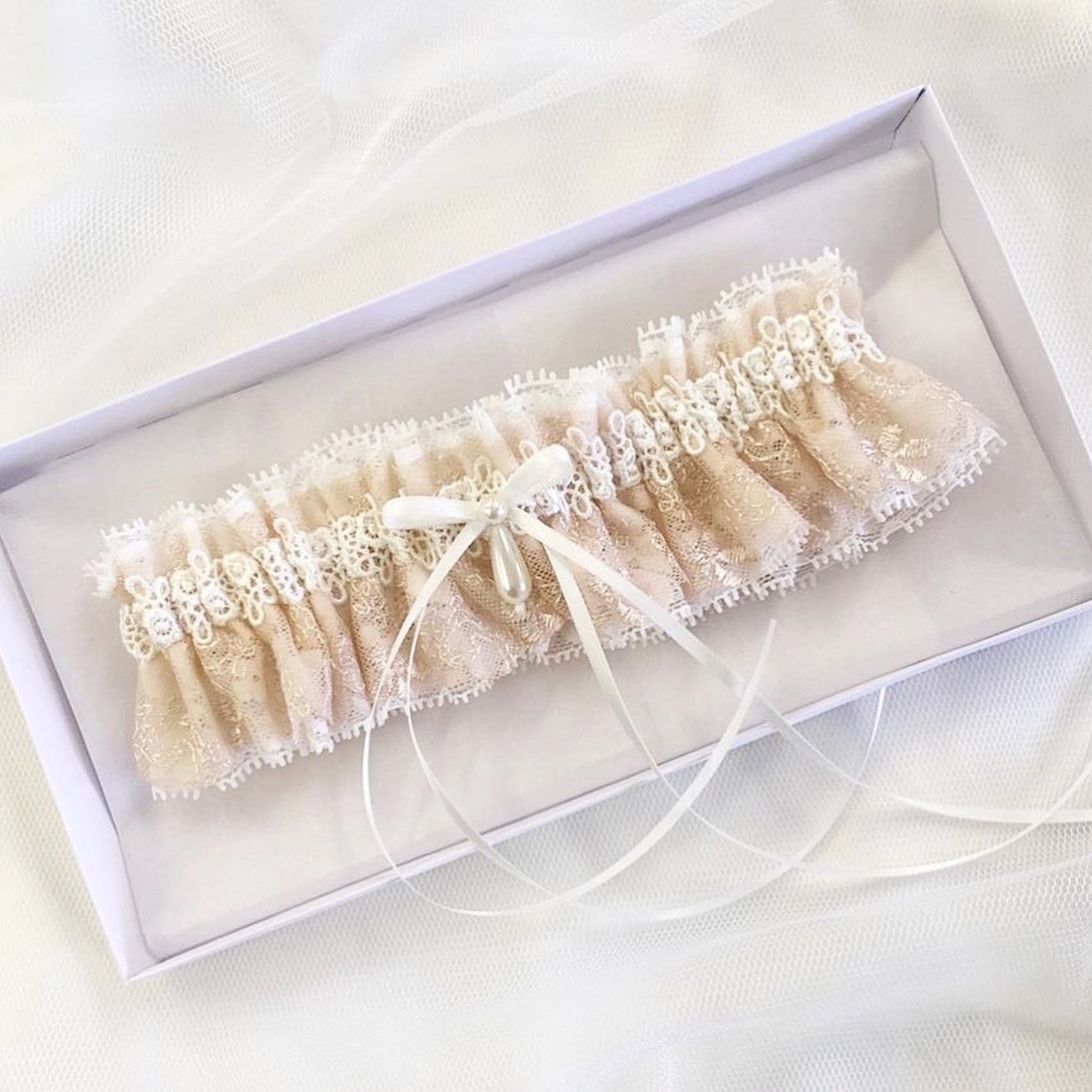 Une magnifique jarretière en dentelle florale blush et ivoire ornée d'un joli nœud en ruban de satin soyeux décoré d'une gouttelette de perle ivoire scintillante. Cette magnifique jarretière de mariée est un très beau cadeau de mariage pour la mariée.