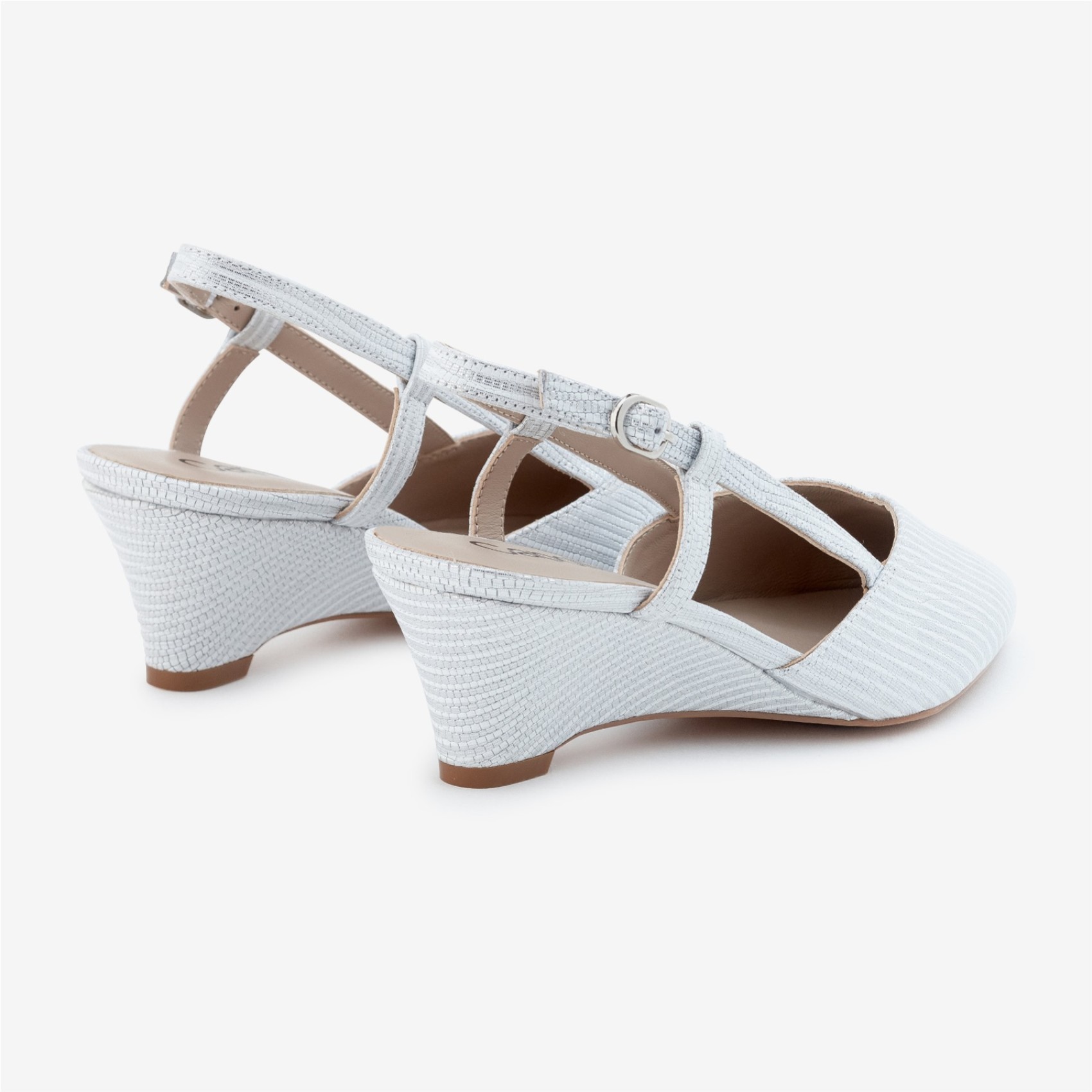 Capollini Escarpins à talons compensés bas en cuir nubuck rayé argenté Lumi | C345