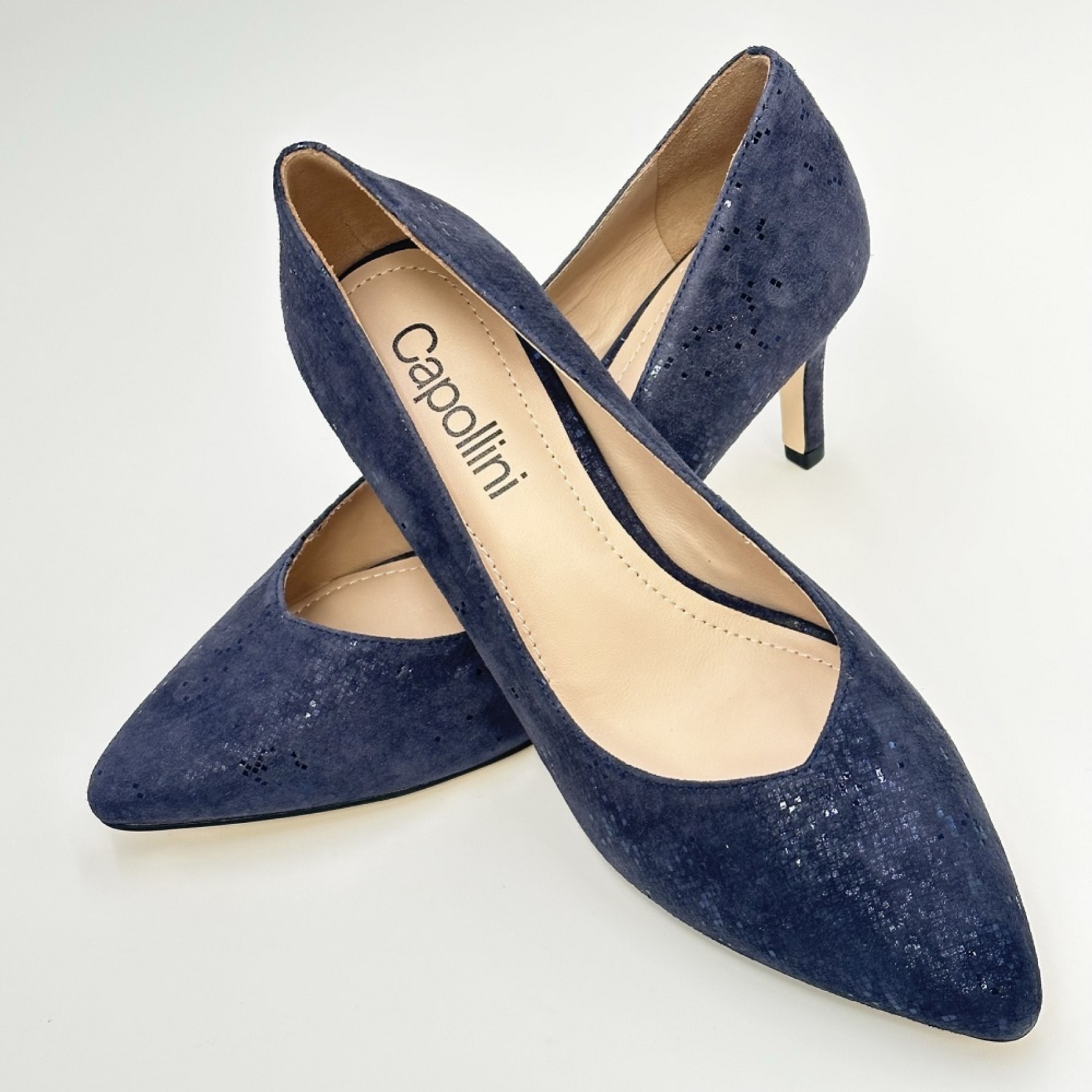 Cet escarpin intemporel à talon moyen est fabriqué à la main dans un cuir marine intemporel. Ce modèle présente un bout pointu élégant qui allonge parfaitement la jambe. Idéal pour toutes les occasions spéciales, y compris la mère de la mariée, les invités de mariage, les fêtes et les soirées.