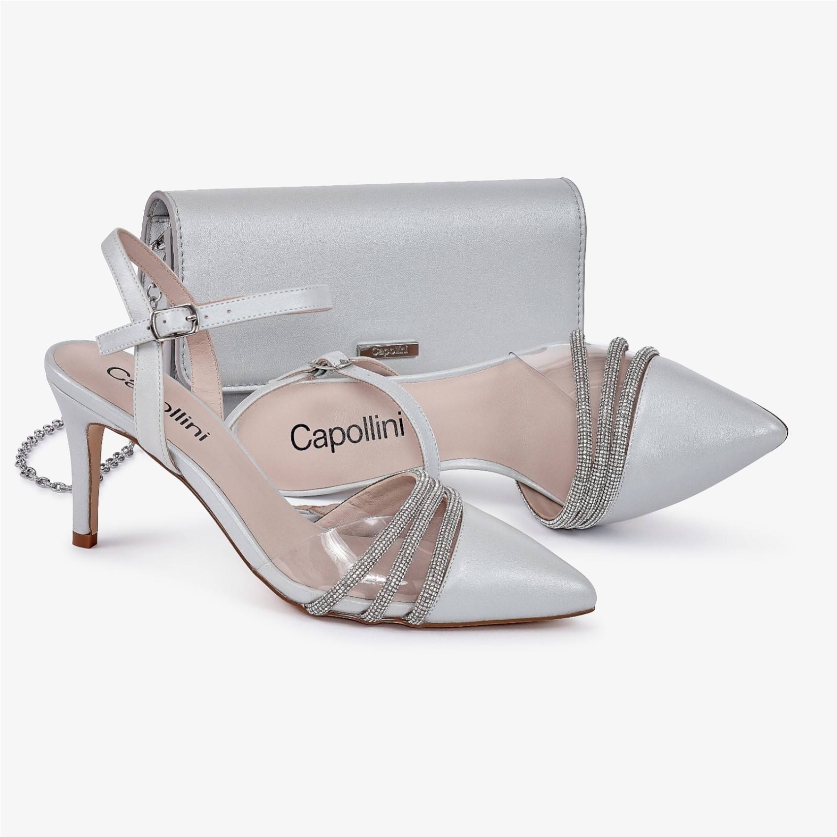Capollini Ophelia Dove Gris Cuir perlé Ankle Strap Slingbacks | C233