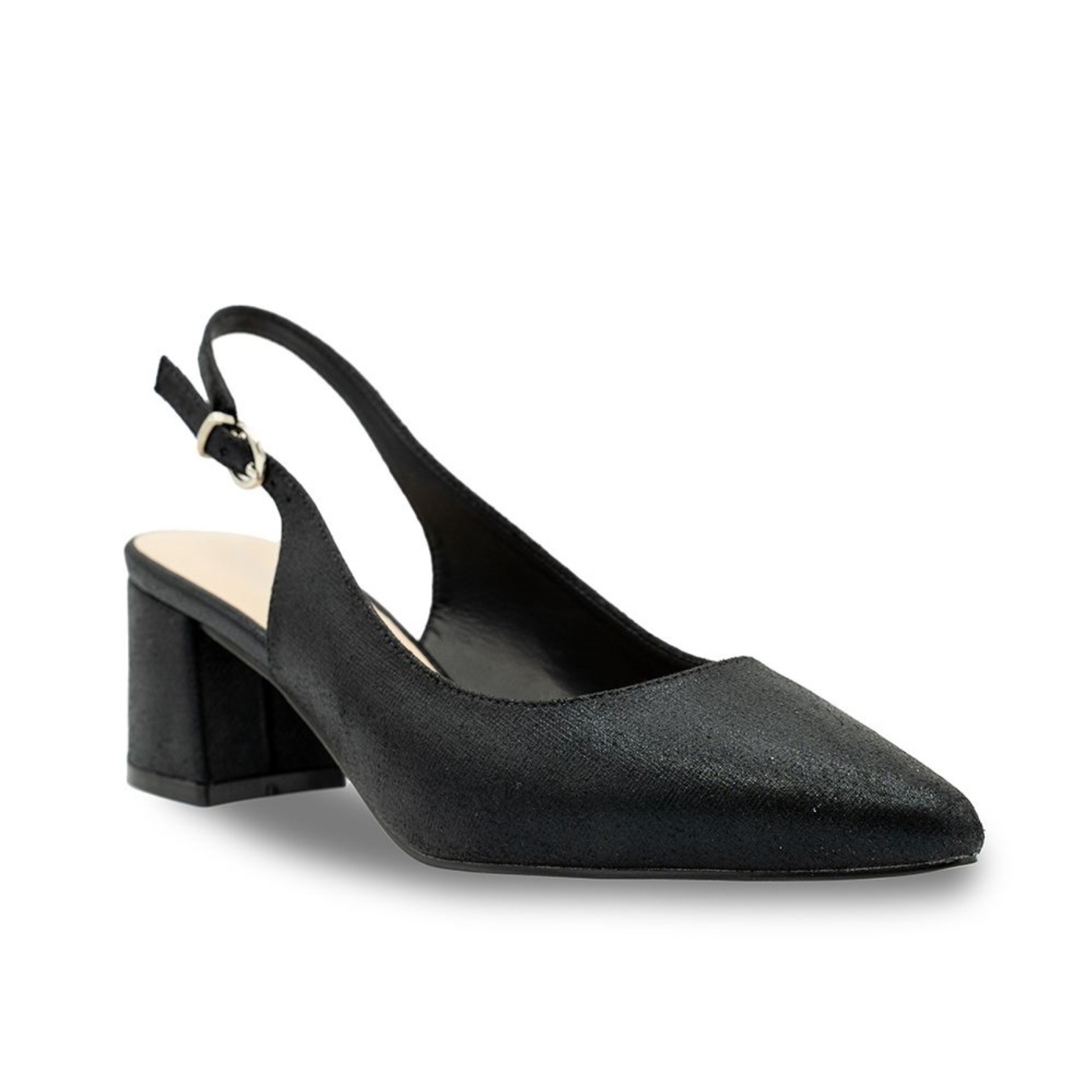 Paradox London Flynn Black Shimmer Wide Fit Low Block Heel Slingbacks (escarpins à bas talons) | FLYNNBLK-PP