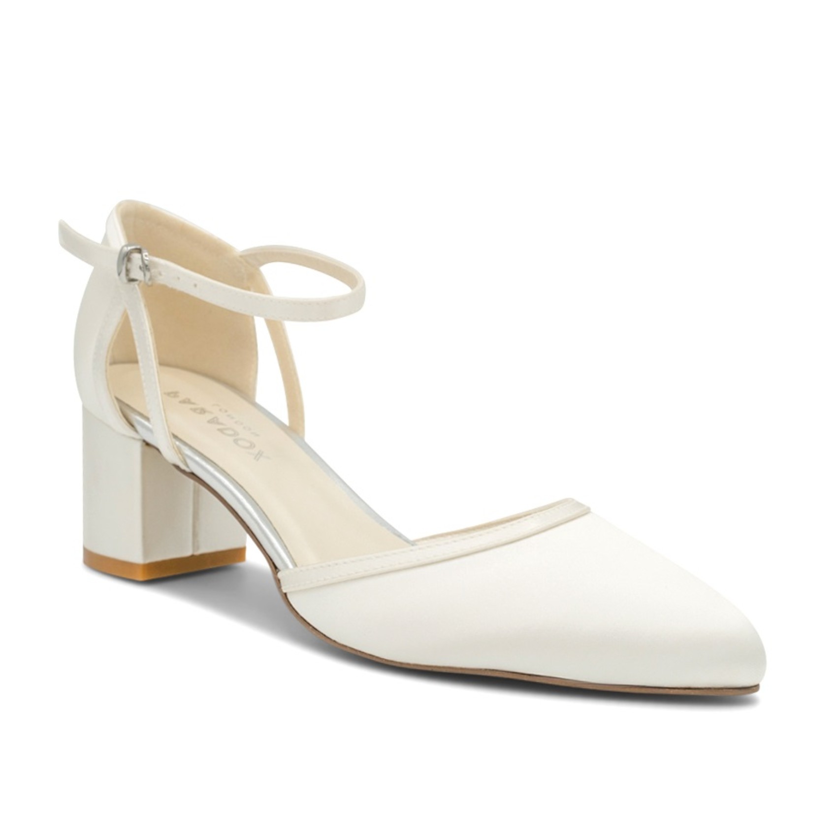 Les chaussures de mariage Paradox Aviana reposent sur un talon bloc bas et robuste et présentent de jolies découpes ainsi qu'une fermeture sécurisée au niveau de la cheville. Fabriquées en satin ivoire teintable et rembourrées pour le confort de votre journée spéciale, ces chaussures de mariage sont parfaites pour un look de mariée classique.
