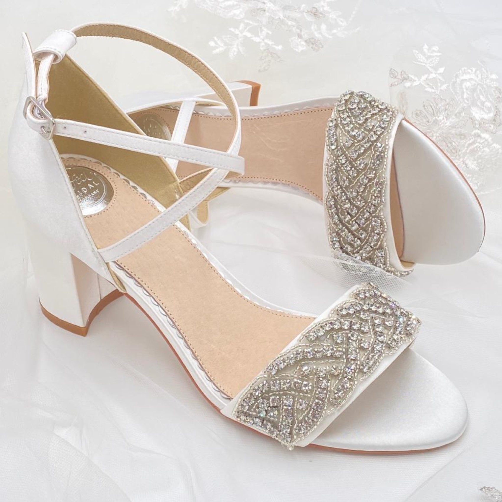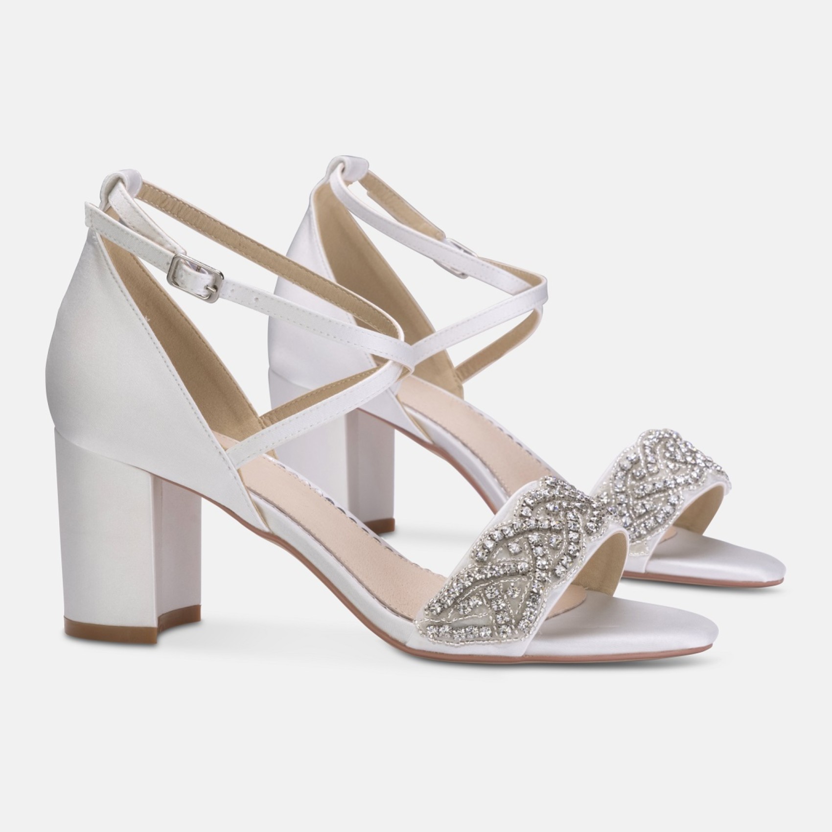 Blair est une magnifique sandale de mariée à la pointe de la mode, dotée d'un talon mi-bloc et d'une bride transversale de soutien. Le devant orné de cristaux en fait un modèle idéal pour les mariages et les occasions spéciales.
