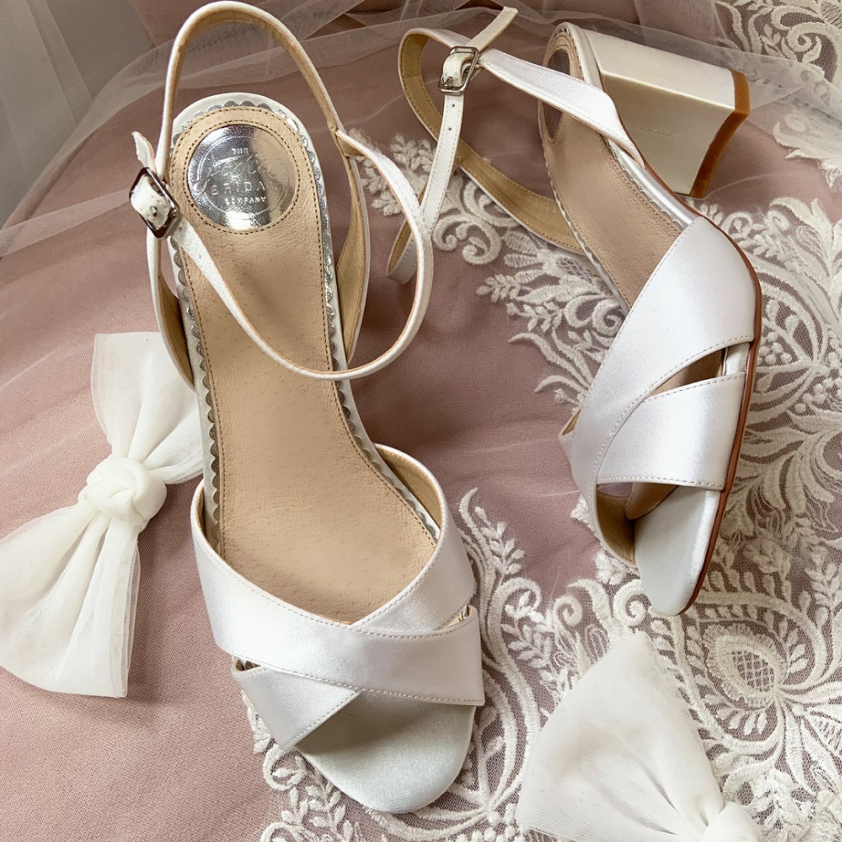 La chaussure Georgia est accompagnée d'une paire de magnifiques nœuds en tulle ivoire surdimensionnés, qui peuvent être détachés pour donner deux looks différents. Cette sandale chic peut également être associée à nos clips de nœuds amovibles Gigi, disponibles en pois et en perles - autant d'options !